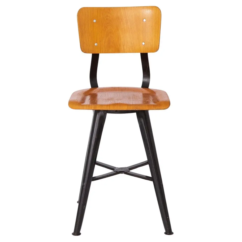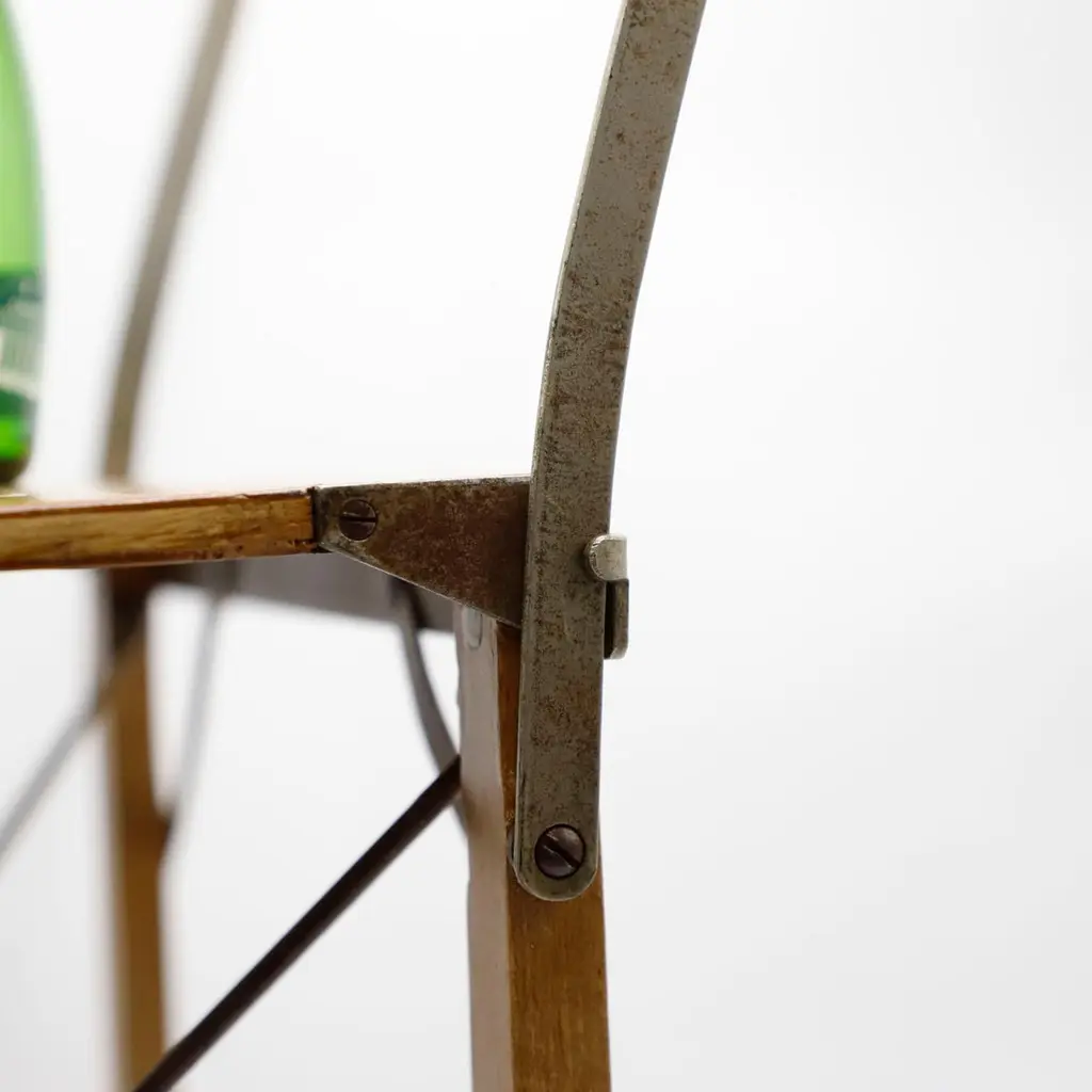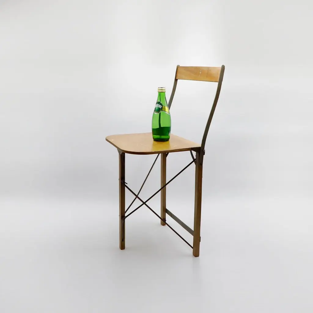 Circa 1930. We offer this beautiful folding children chairs made in plywood and iron structure. Fantastic utilitarian chairs that cleverly fold down so you can store them tidily away. All fold nicely and are in good condition, with just minor signs of use. The price is for each chair and we have 4 available.