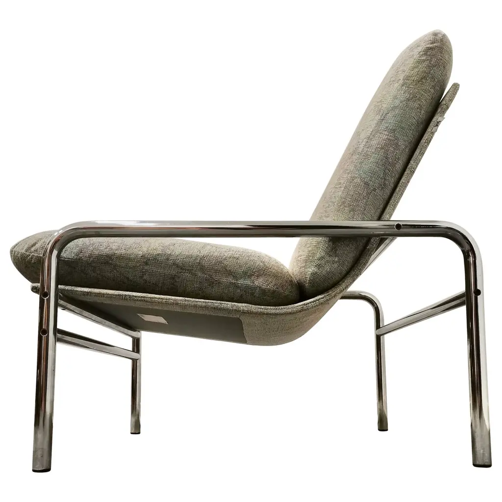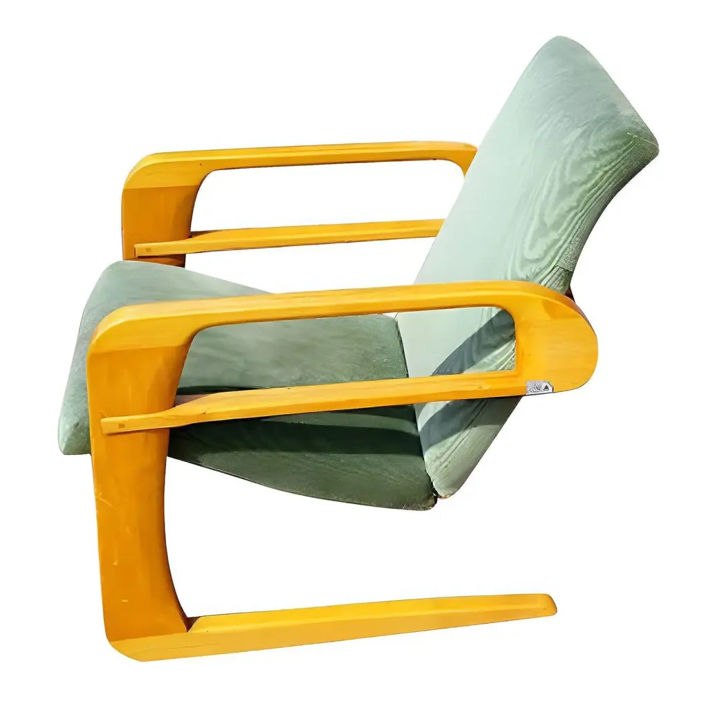 These rare "Airline Chair" armchairs by the iconic modernist K.E.M. Weber (American b. Germany, 1889-1963) was originally designed in 1934 and produced in 1938 for the Walt Disney Studios in a limited run of 300. The innovative seat, upholstered in a woven green wool fabric, reclines for added comfort, supported by its cantilevered frame. Simply put, the "Airline Chair armchair is a masterpiece of modern design. Our version has been refinished and reupholstered to its original appearance. As his most famous design, the "Airline chair" armchair epitomizes the sleek and sophisticated modernism that came to define the Hollywood of the 1930s. Sold as a single for $42,500, 2 available. Measurements: 34" Tall X 30" Wide X 34" Deep United States, 1938