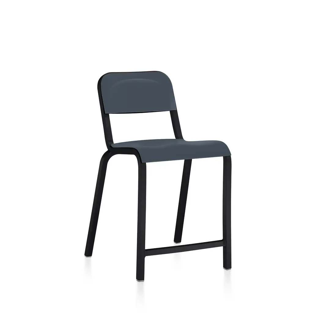 1951 by BMW, 2005 This family of stacking chairs and stools is a reinterpretation of an old Emeco chair from 1951. The new version retains Emeco's DNA - simple, strong, utilitarian - yet looks forward. The handmade aluminum frame has a dynamic stance and is combined with a seat and back made from recycled plastic. Made in USA. All colors suitable for outdoor use. Stacks 6 high. Standard glides: hard plastic, suitable for carpeted floors and outdoor use. Alternative glides available at an upcharge. Emeco's in-house selection of powder coat colors are available for all 1951 frames, same price as the standard black frame, no MOQ.