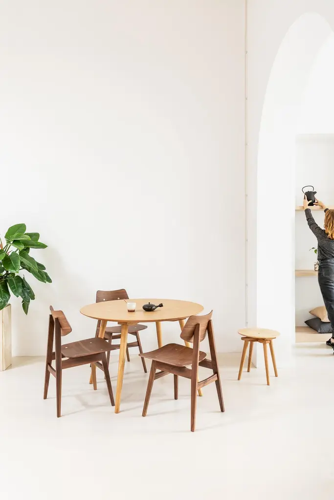 Designed at a time when the combination of solid wood and plywood led to an unbeatable type of chair, the 1960 wood chair embodies retro chic and is built to last. The chair is easy on the eye thanks to the soft-edged frame and both seat and backrest can be upholstered for additional comfort.The 1960 family range is built on the satisfying invention of bending wood into shapes which optimally suit the human body. While maintaining the likeable tactile properties of natural wood, the design that underpins the 1960 range never goes out of style. The cleverly designed curves of the original chair by Niko Kralj inspired us to work on a complete 1960 range to meet present-day demands for authentic design and uncomplicated warmth.With over two million chairs produced, the designs of Niko Kralj (1920-2013) have served numerous generations. After the Second World War, traditional production methods gave way to modern inventions and led to a new era of furniture design. As a trained architect and an absolute pioneer in this field, Niko developed truly innovative pieces for the time and became one of the first ever industrial designers. It’s little wonder that fellow professionals are gradually recognising his work, which has been rewarded with permanent displays in design museums such as the Museum of Modern Art (MoMA) in New York, Designmuseum Denmark and The International Design Museum Munich.1960 Wood Chair in Mid-Century Modern style is now available in natural walnut, black oak and natural oak.