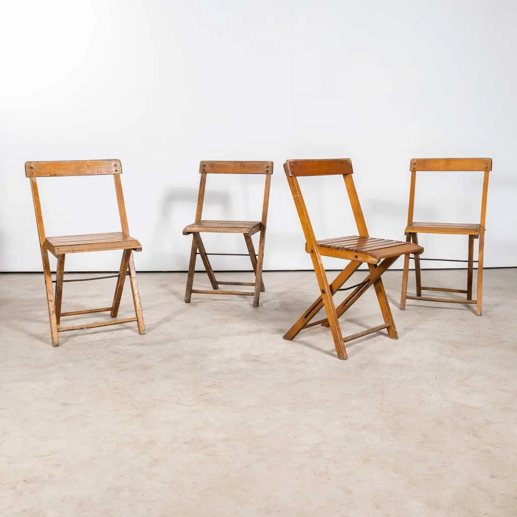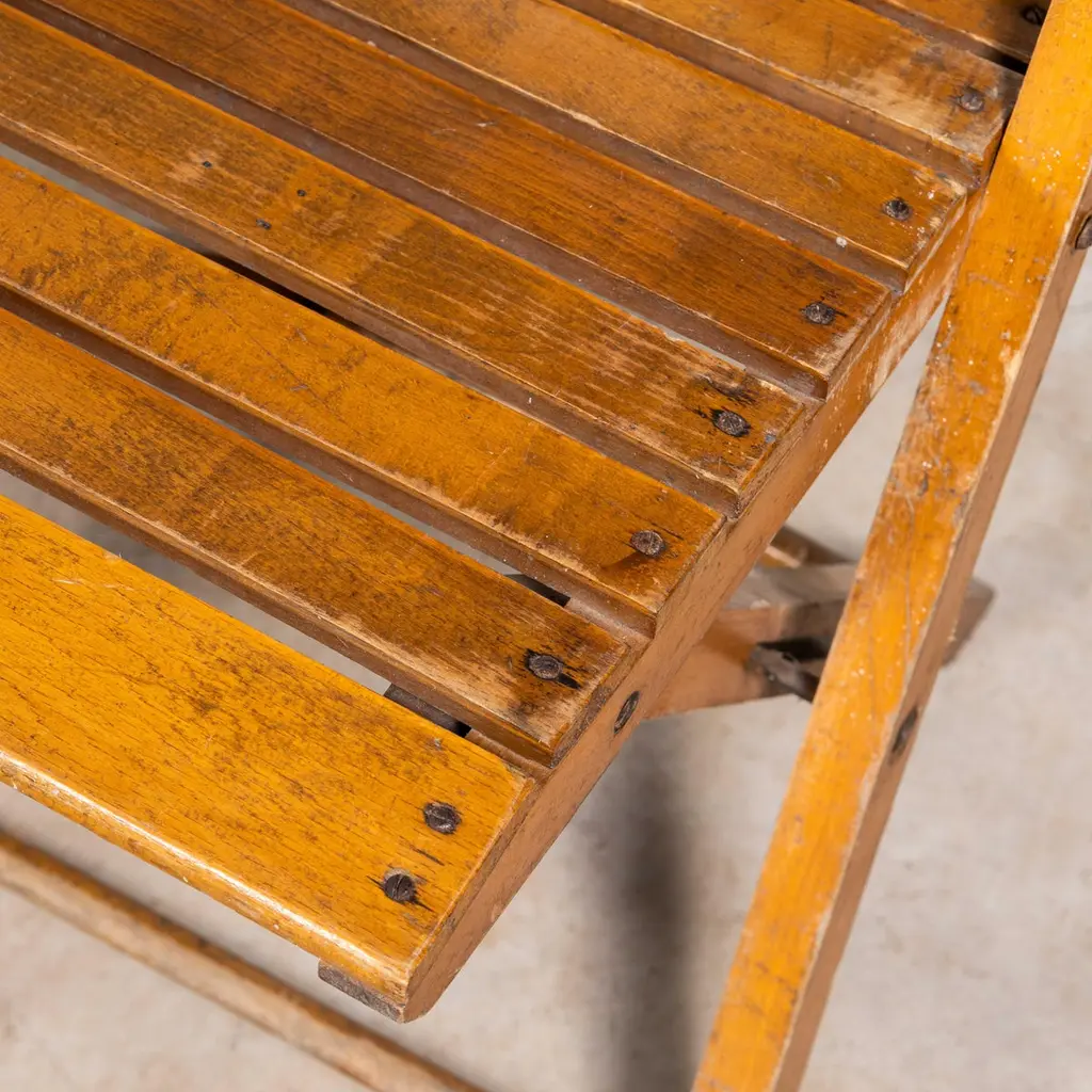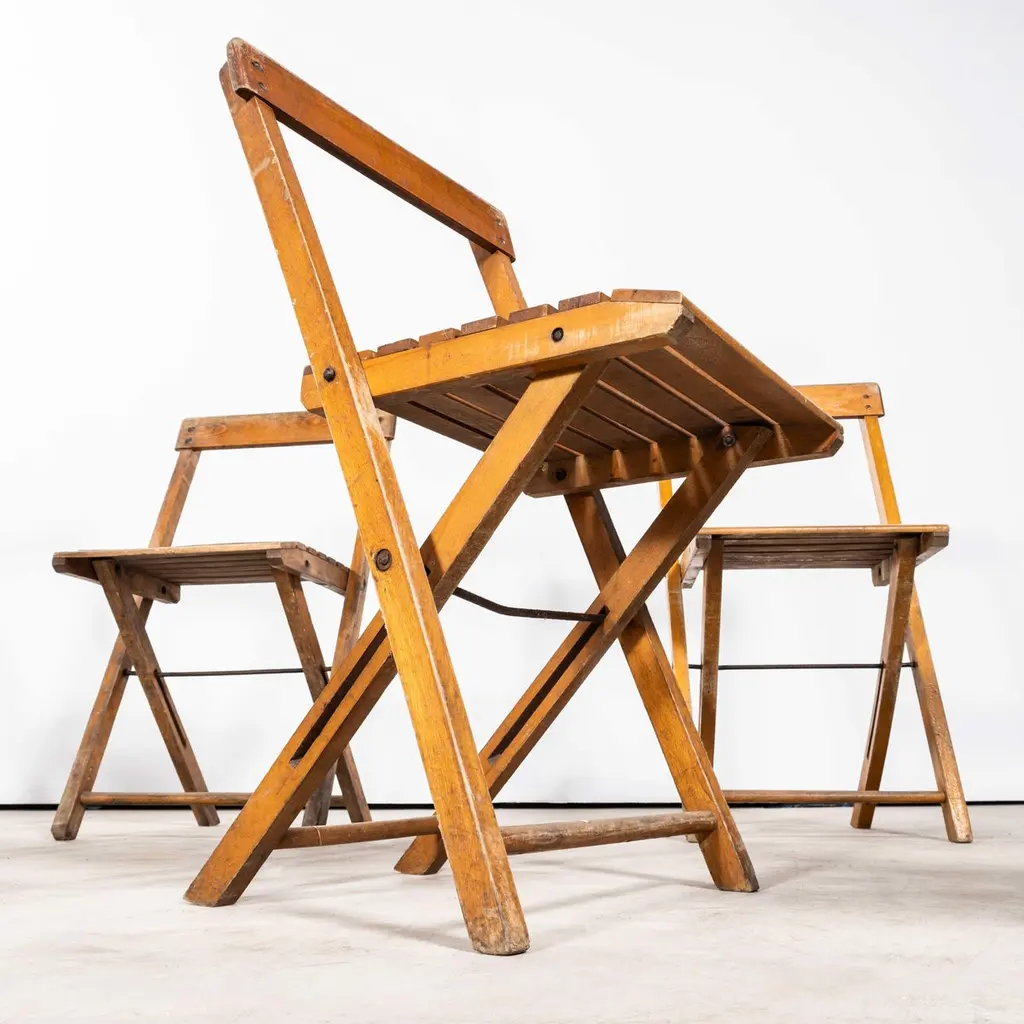1960’s Beech Bar Back Folding Chairs – Good Quantity Available1960’s Beech Bar Back Folding Chairs – Good Quantity Available. Good practical classic folding chairs originally made in Germany of solid beech. Every chair passes through our workshops where they are cleaned and serviced. Vintage folding chairs by nature have some amount of ‘give’ but each chair has been checked and serviced for daily use. Seat height 46cm.WORKSHOP REPORTOur workshop team inspect every product and carry out any needed repairs to ensure that everything leaves us serviced and maintained ready for many more years of life. All of our vintage products show the rich beauty and history of their life with the knocks and bumps of many years of use and we try to minimise restoration to keep every piece as original as possible.Date: 1960'sMaker: Industrial Production - GermanyDimensions:L 50 x W 42 x H 82 cm