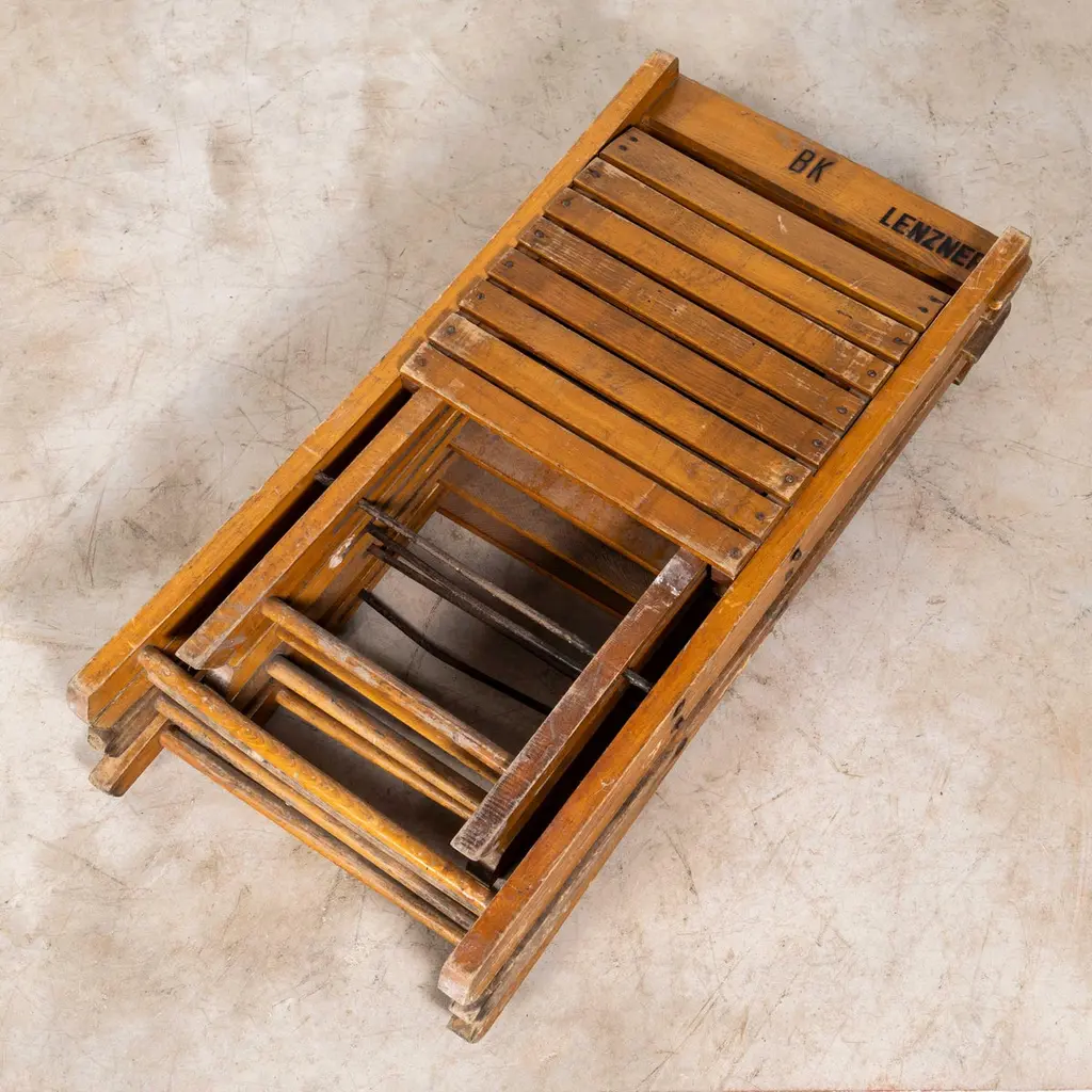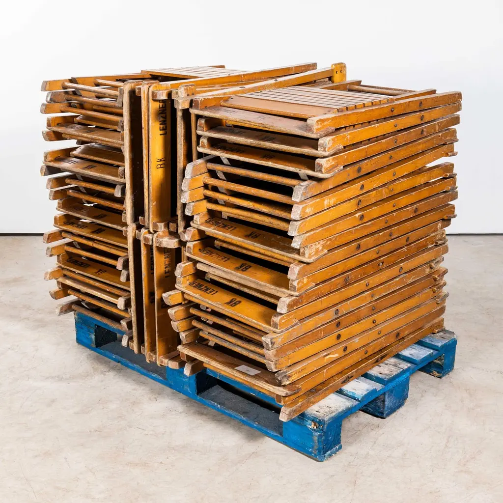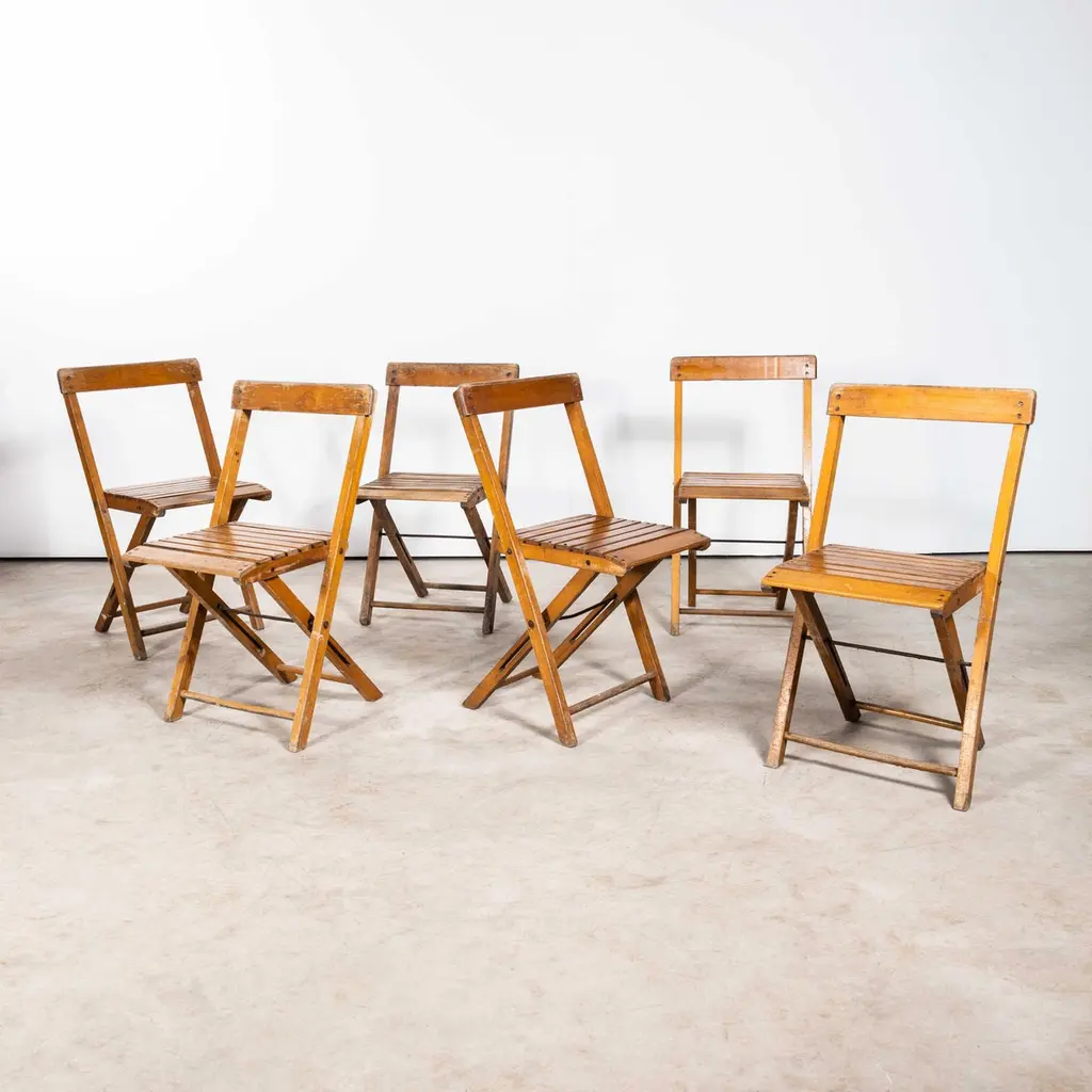 1960’s Beech Bar Back Folding Chairs – Good Quantity Available1960’s Beech Bar Back Folding Chairs – Good Quantity Available. Good practical classic folding chairs originally made in Germany of solid beech. Every chair passes through our workshops where they are cleaned and serviced. Vintage folding chairs by nature have some amount of ‘give’ but each chair has been checked and serviced for daily use. Seat height 46cm.WORKSHOP REPORTOur workshop team inspect every product and carry out any needed repairs to ensure that everything leaves us serviced and maintained ready for many more years of life. All of our vintage products show the rich beauty and history of their life with the knocks and bumps of many years of use and we try to minimise restoration to keep every piece as original as possible.Date: 1960'sMaker: Industrial Production - GermanyDimensions:L 50 x W 42 x H 82 cm