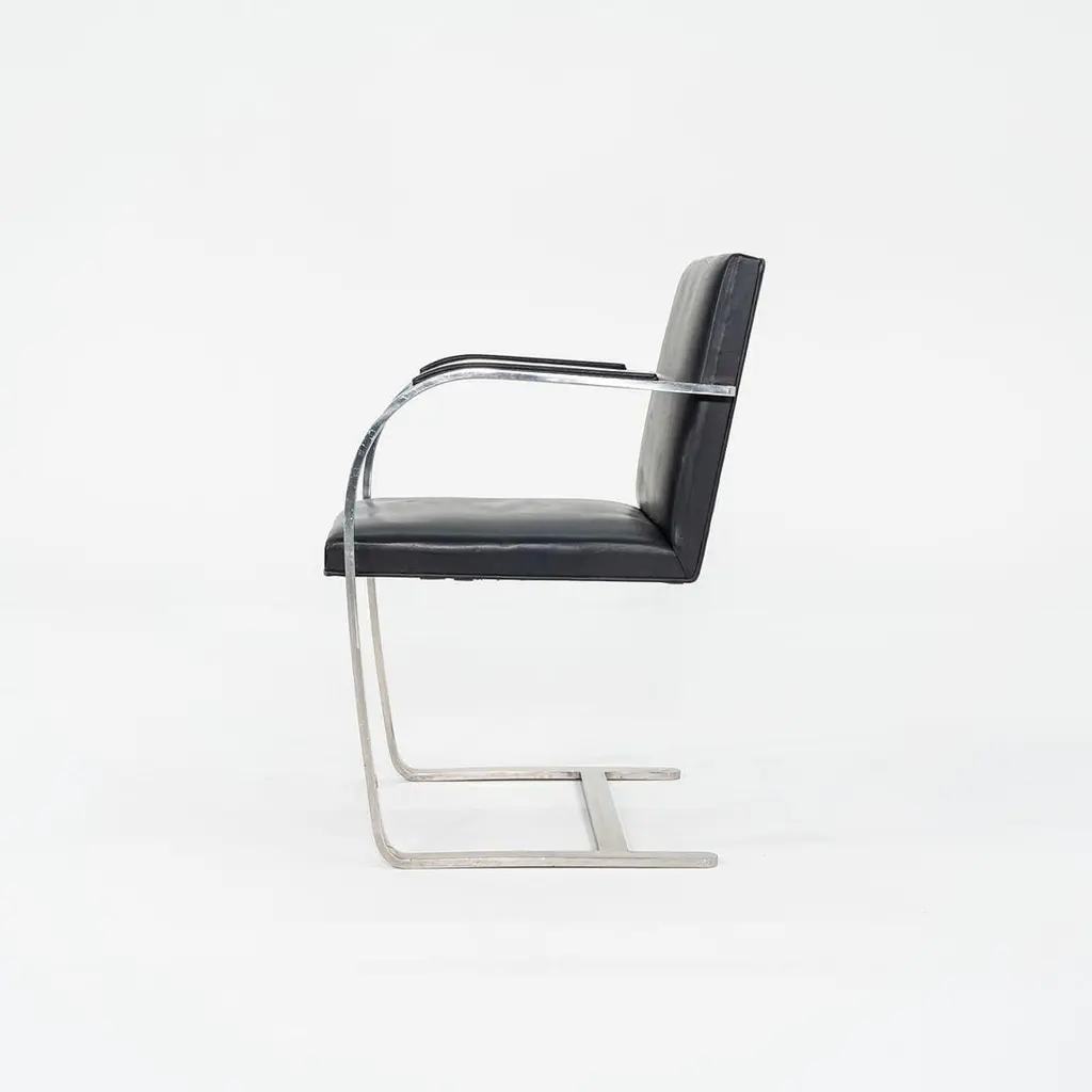 1960s Mies Van Der Rohe Flat Bar Brno Chair In Polished Stainless W/ Leather