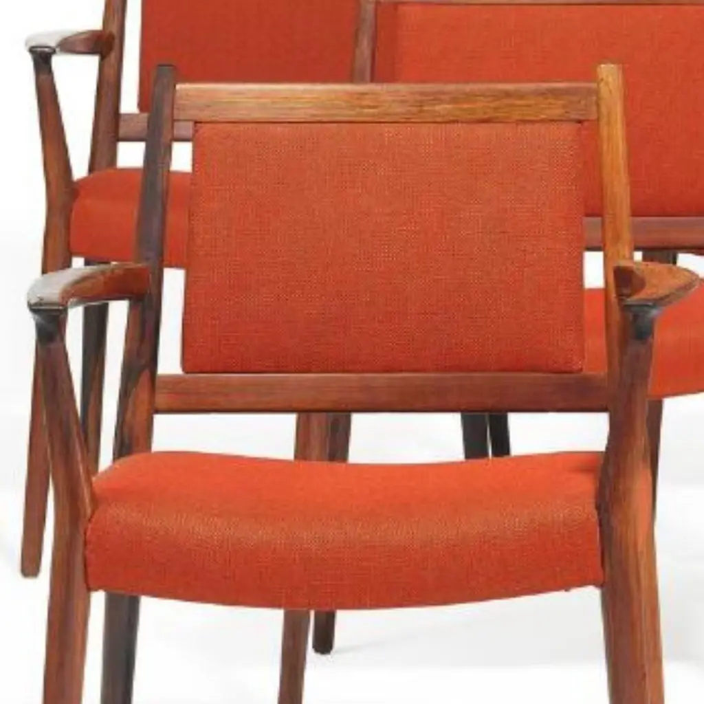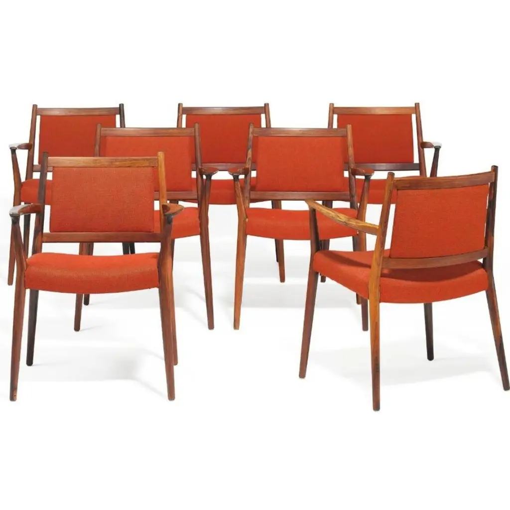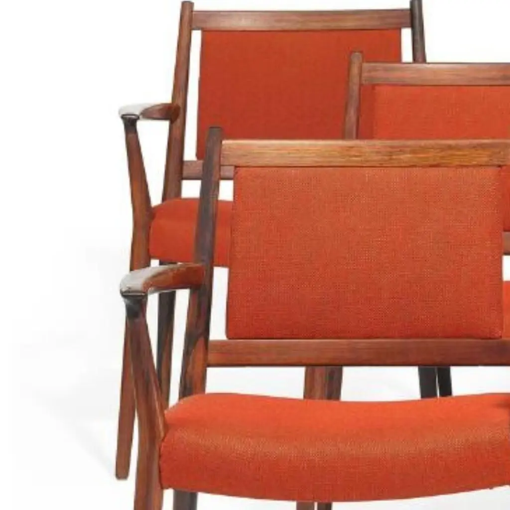 1960s Steffen Syrach-Larsen, 7 Solid Wood Carver Chairs, Red Wool Upholstery