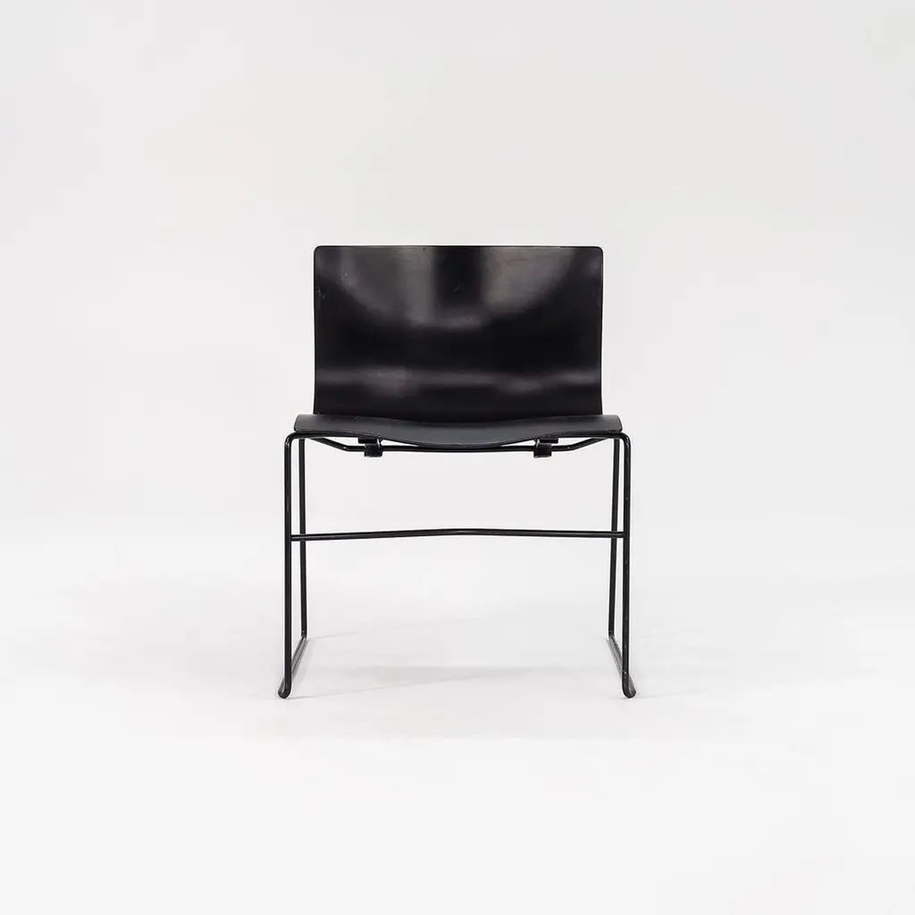 This is a Handkerchief Chair, Model 4901, designed by Lella and Massimo Vignelli for Knoll in 1983. The listed price includes one chair, and we have several available for purchase. These examples date to 1998. Their design features a wavy molded seat in black, perched atop a black powder-coated steel sled base. The Vignelli’s were some of the most influential designers of the 20th century, perhaps most famous for their work with the New York City subway maps. Vignelli associates worked across interiors, graphic design, furniture, and beyond. Each chair measures 22.5 inches deep, 23 inches wide and 29.5 inches high. They have a seat height of 18 inches. The fiberglass seats show some small scuffs to their finish, and there are some small scratches and nicks to the bases. The black seats are not faded and still look quite fresh. Overall, these chairs are in very good condition with some wear. Please see photos. Genuinely faulty goods will be replaced or money refunded on a case by case basis, however we must be advised of any faulty goods upon receipt of the item. It is the customer's responsibility to pay for return shipping and ship the item back to us. If the item is found to be faulty, we will also refund the postage cost. If there is no damage to the item, but a return is approved, the buyer will be responsible for both the initial and return shipping cost. It is at our discretion to refuse the refund of undamaged goods. If an order is placed and you would like to cancel the order, please notify us immediately. Any refunds will be processed via the same means that payment was made.