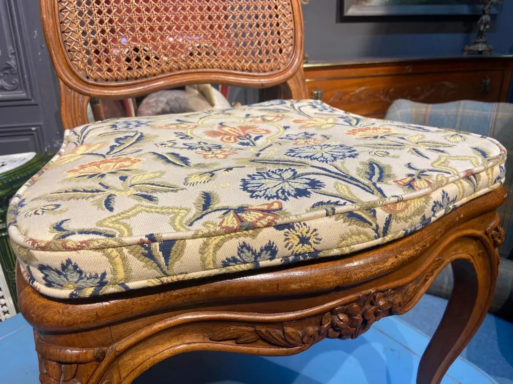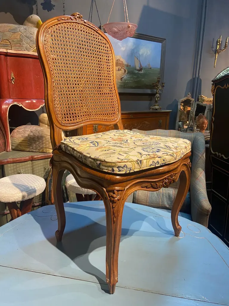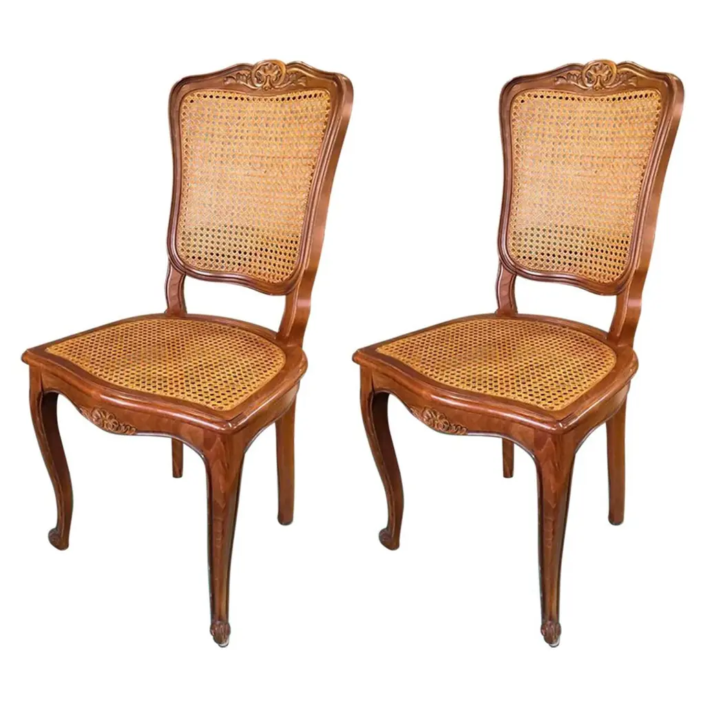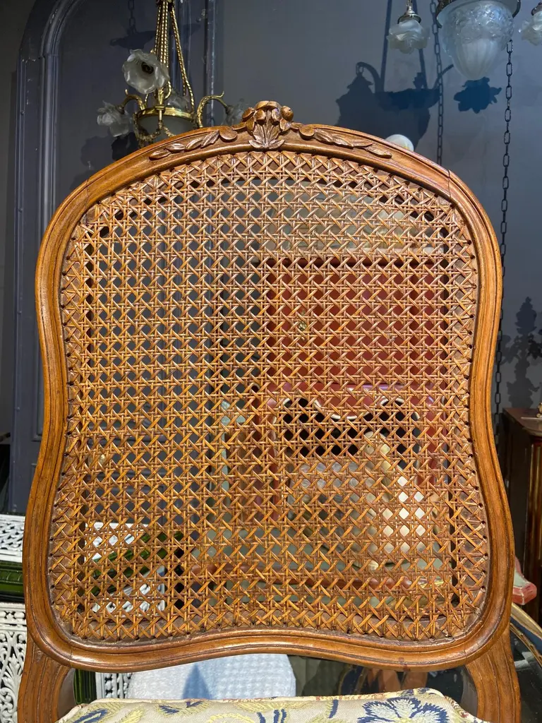 19th Century French Cane Chairs In Hand Carved Walnut Frame In Louis Xv Style