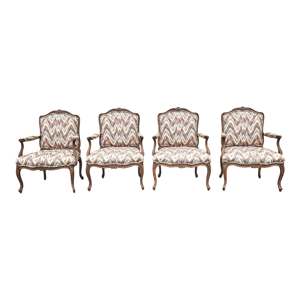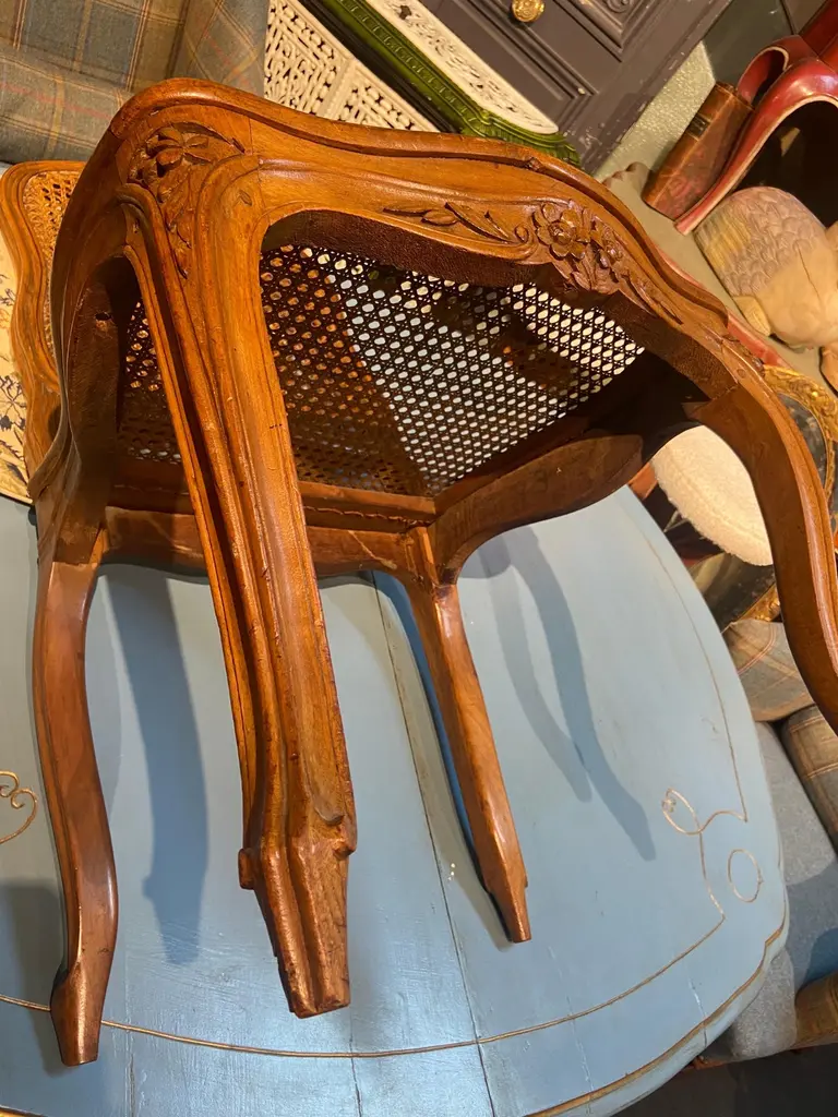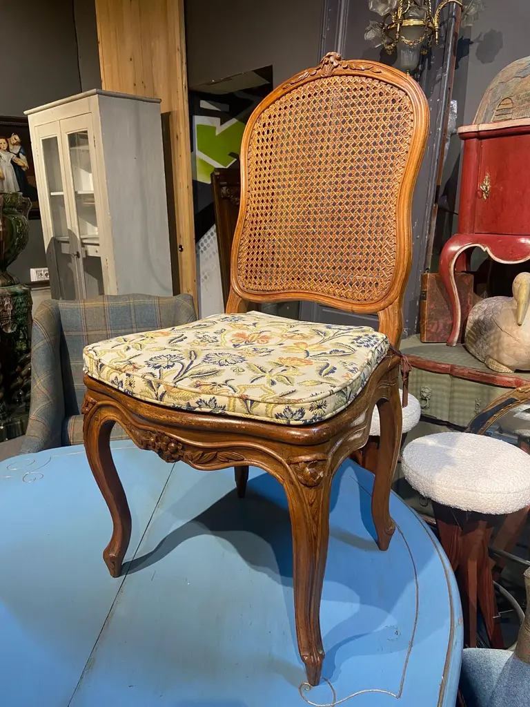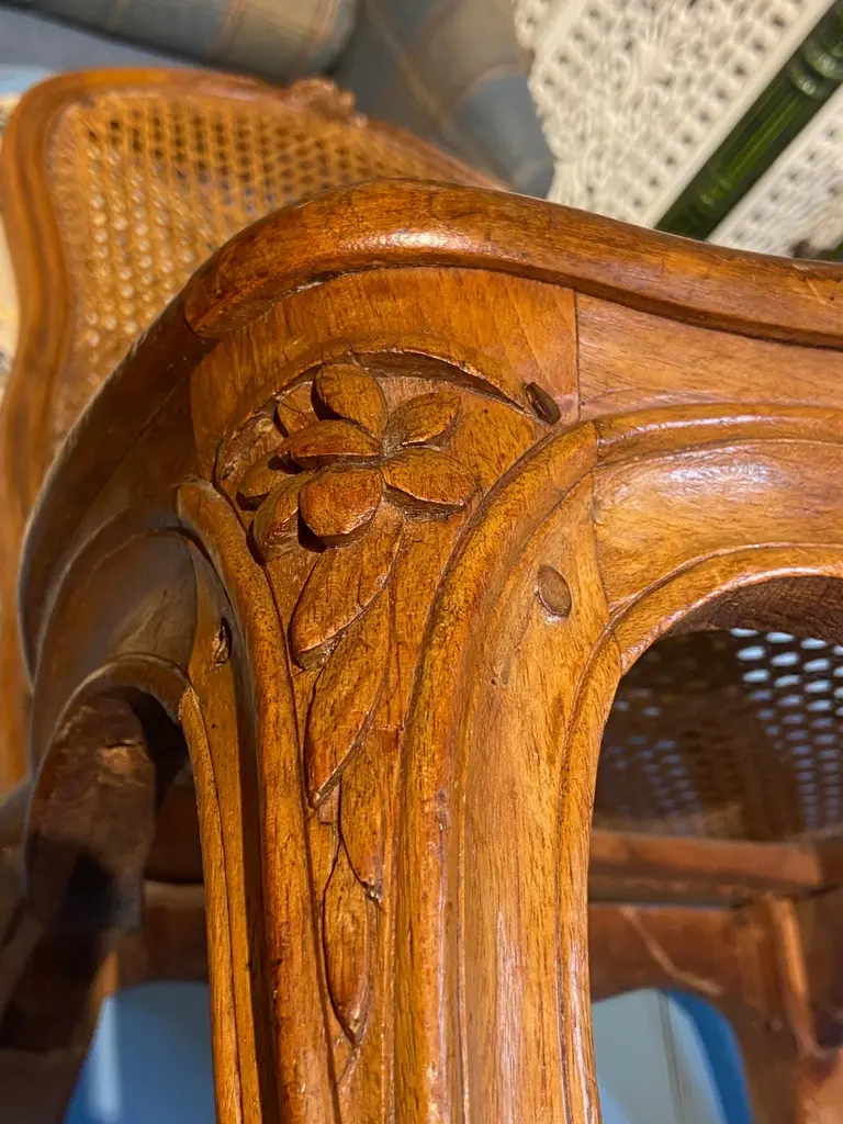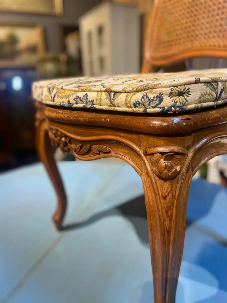 19th Century French Cane Chairs In Hand Carved Walnut Frame In Louis Xv Style