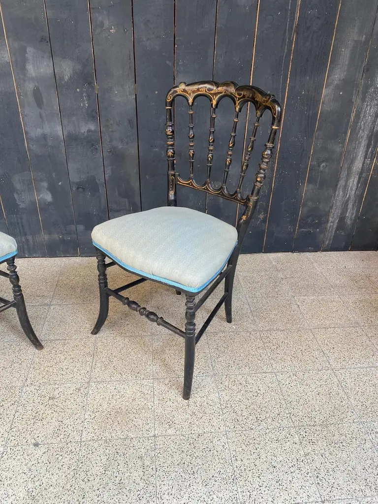 2 Original Napoleon III ebonized chairs, France, 1850s.Wear and lack of gilding.