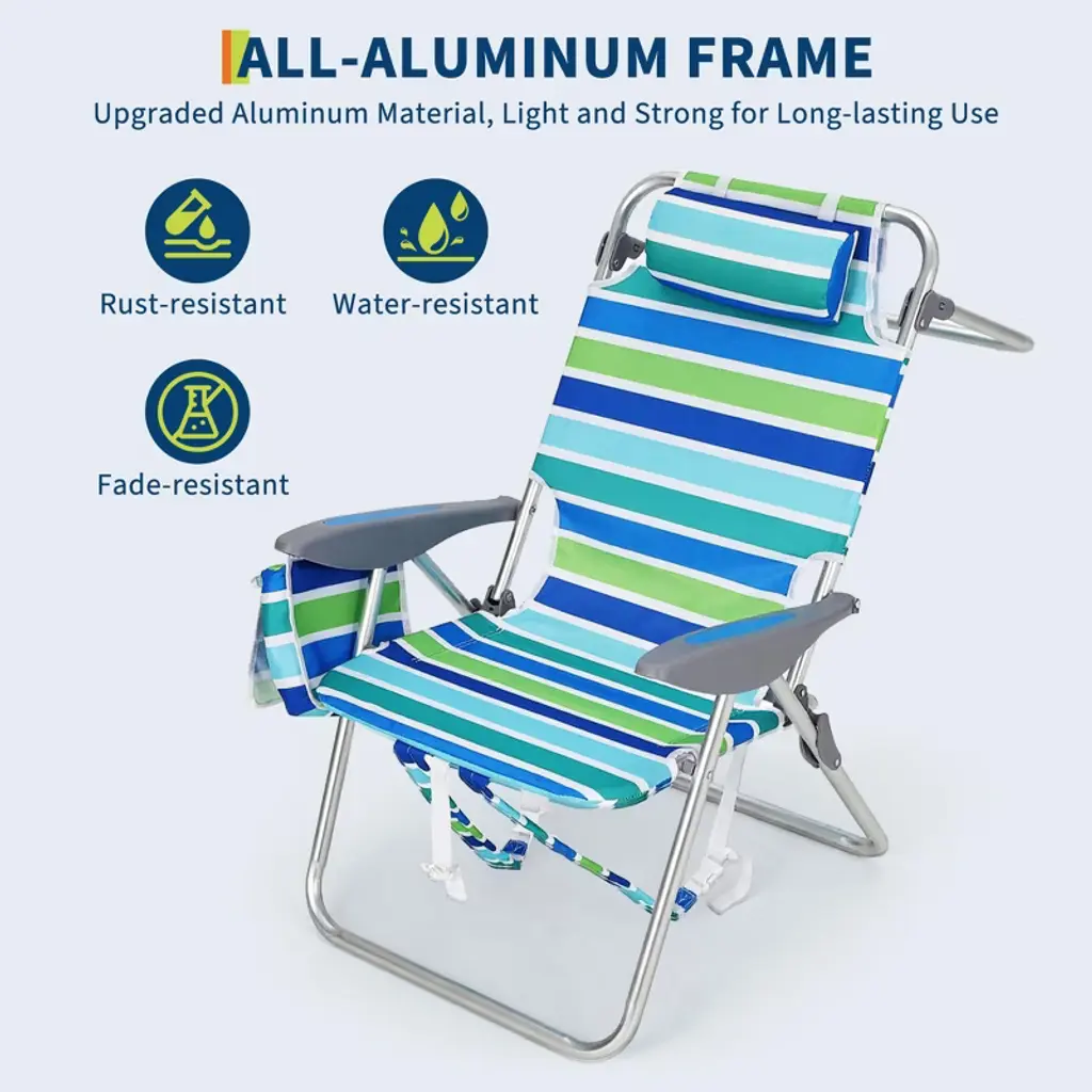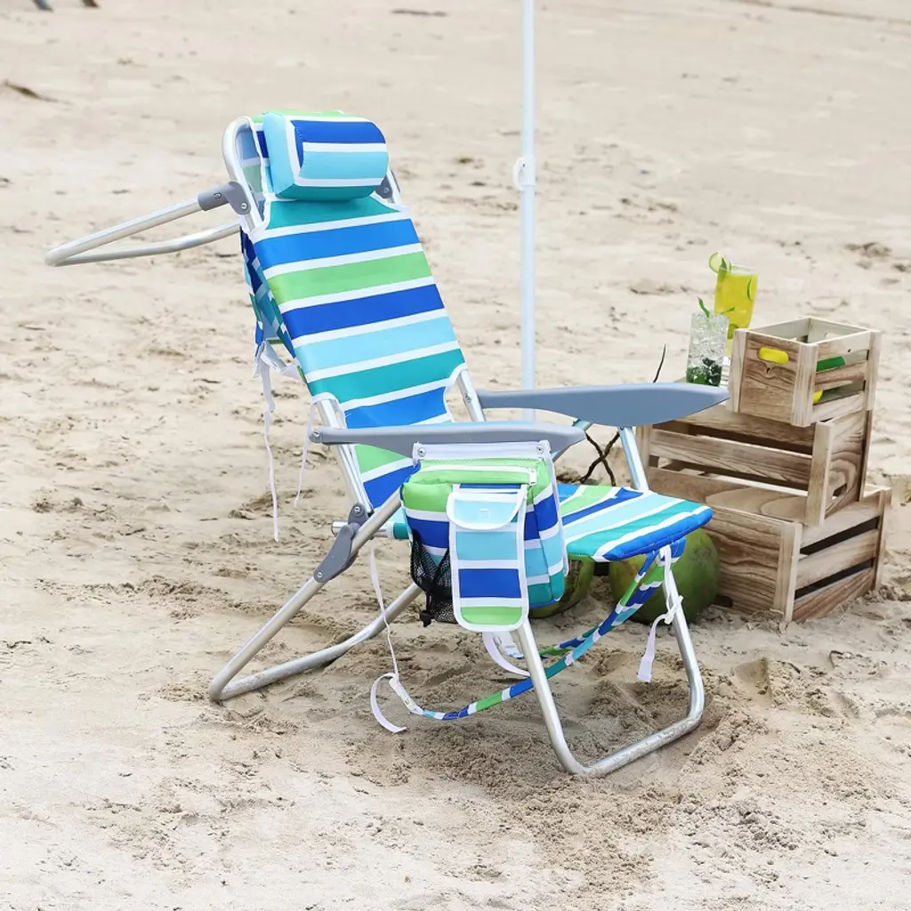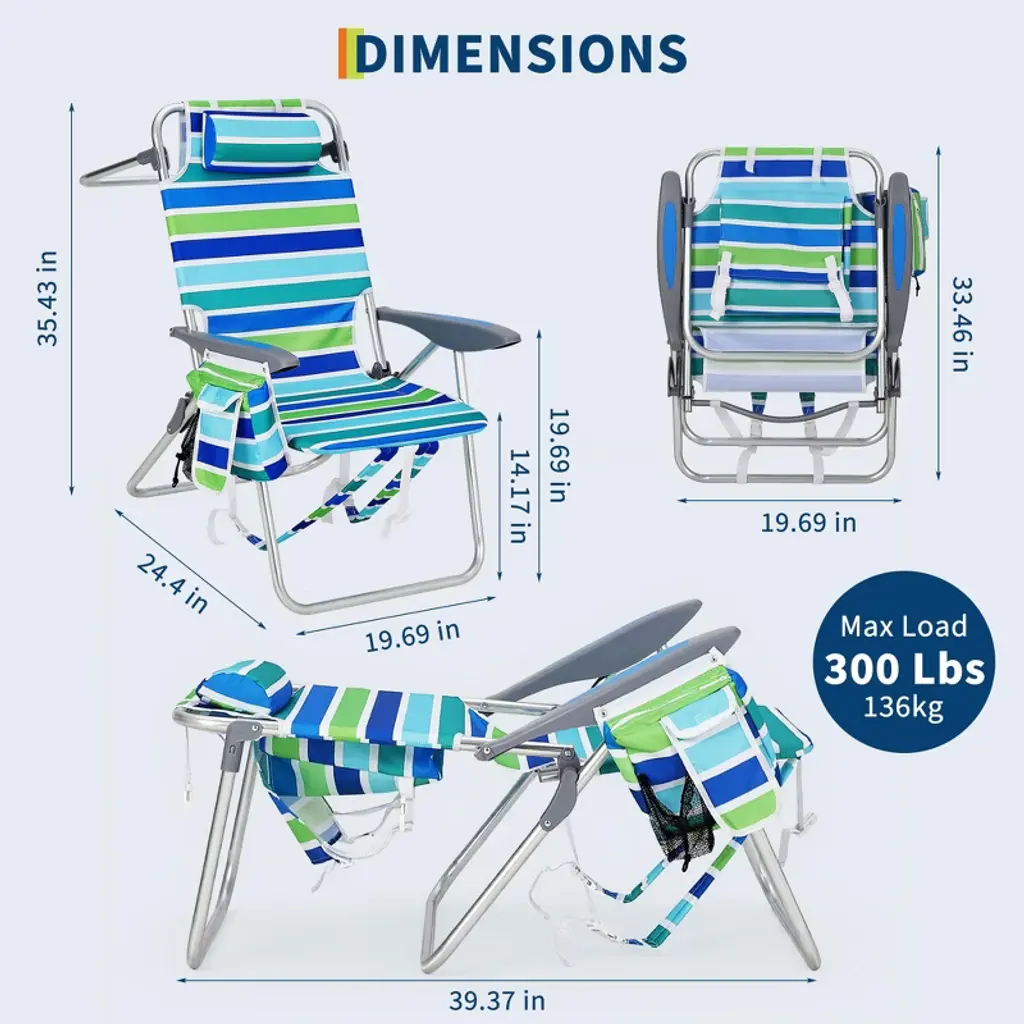 2-pack Backpack Beach Chairs With 5 Reclining Positions, Lightweight Foldable Lay-flat Design, Includes Straps, Cooler Pouch For Beach And Camping