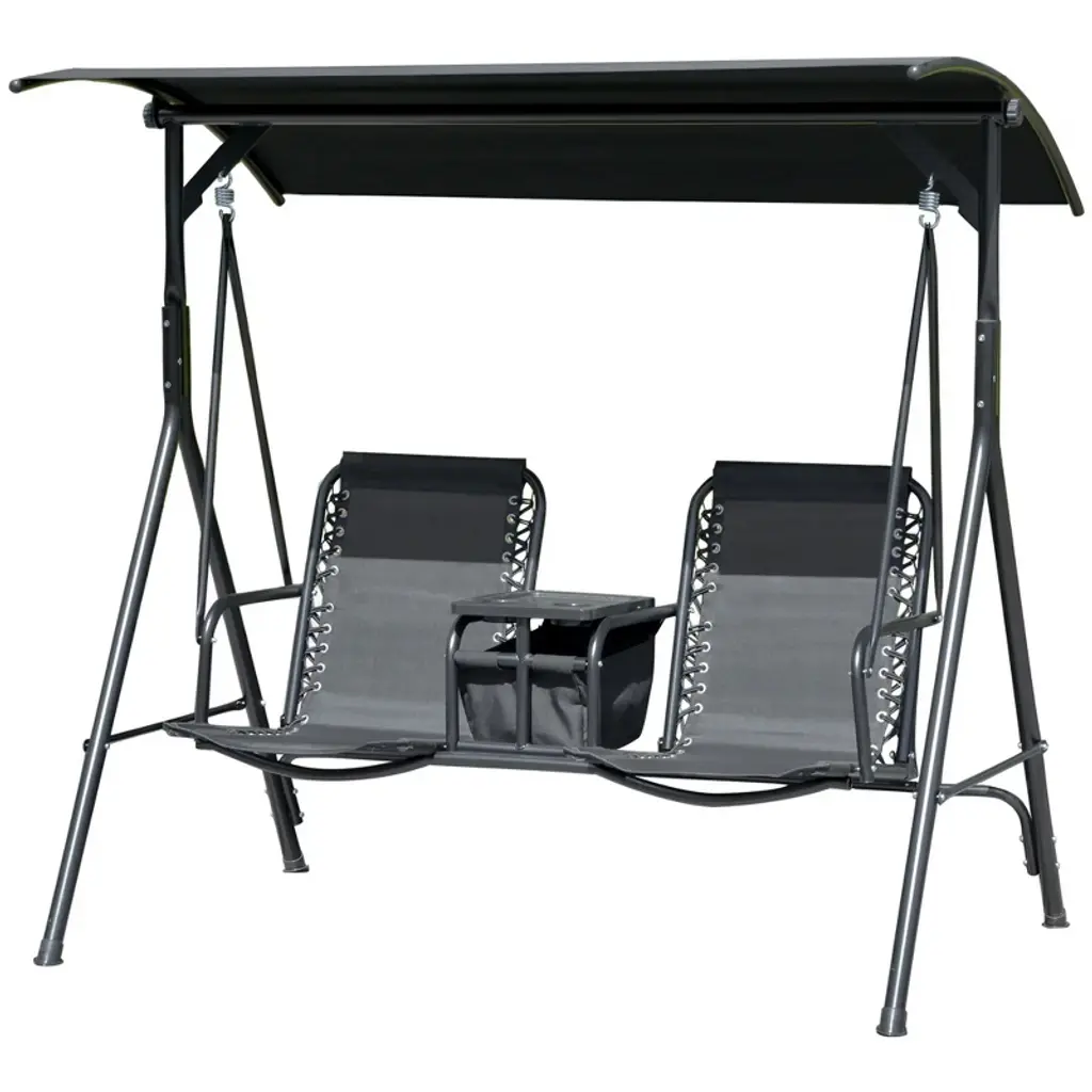 2-seat Patio Swing Chair With Adjustable Tilt Canopy, Breathable Mesh Sea