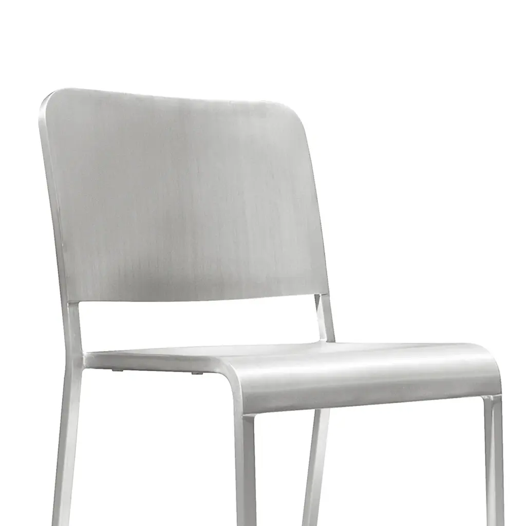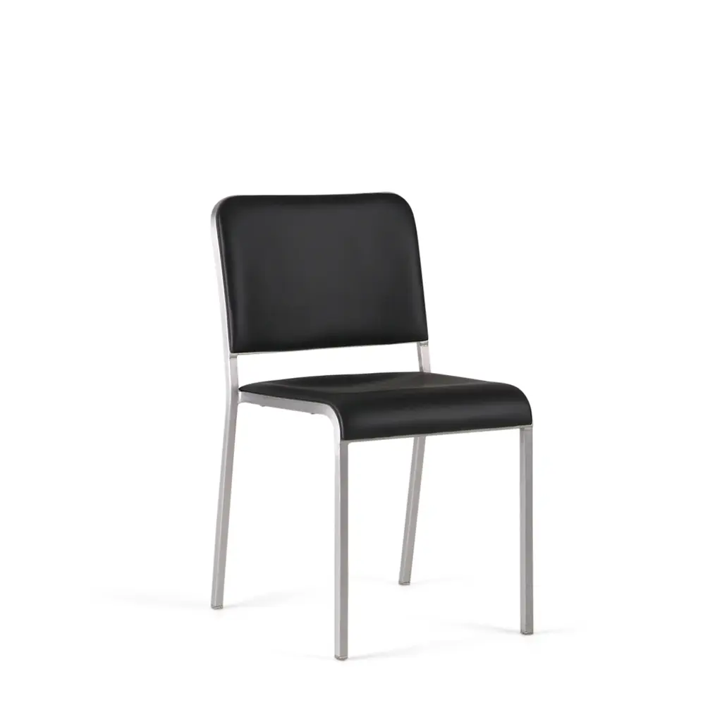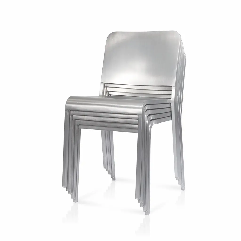20-06 by Foster + Partners, 2006 Norman Foster envisioned a more “neutral” chair - visually and physically lightweight. Built by hand from 80% recycled aluminum in Hanover, Pennsylvania, the 20-06 is lightweight, non-corrosive, fire resistant and super strong. Guaranteed for life. Low carbon footprint. Stacks 12 high. Seat and back pad available. Standard glides: Soft plastic TPU glides. Alternative glides available at an upcharge.