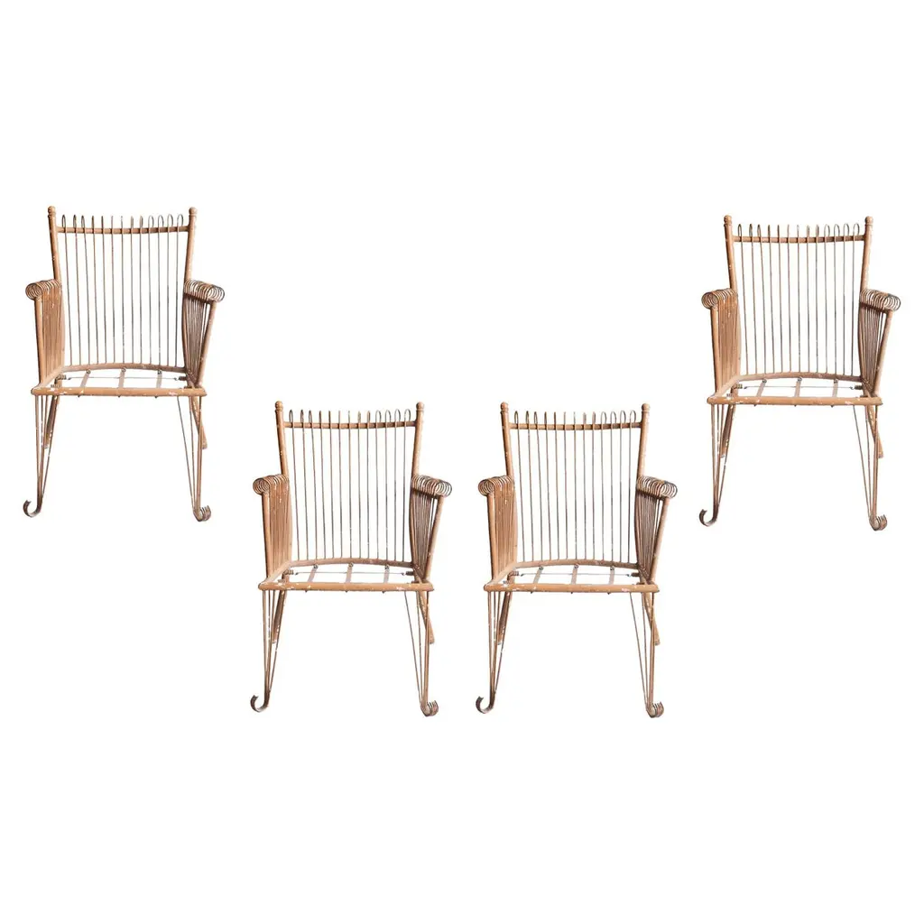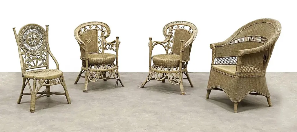 Four different garden chairs made in cane having different shapes and structures.Authentic good condition with no restorations made.France, circa 1920.