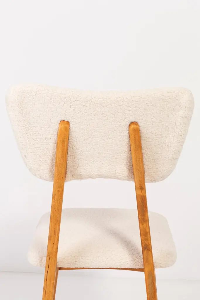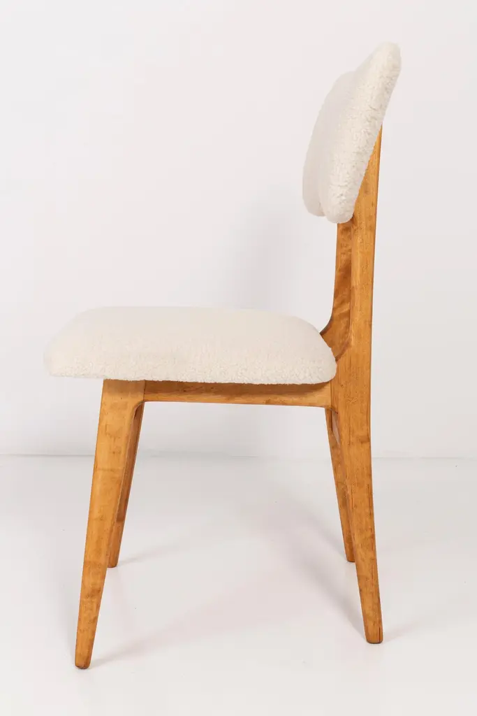 Chair designed by Prof. Rajmund Halas. Made of beechwood. Chair is after a complete upholstery renovation, the woodwork has been refreshed. Seat and back is dressed in crème, durable and pleasant to the touch boucle fabric. Chair is stable and very shapely. They was produced in former furniture factory in Goleniów in the 1960s. We can prepare this set in every color of wood and fabric also in bigger sets. Please check the last picture with boucle color samples.