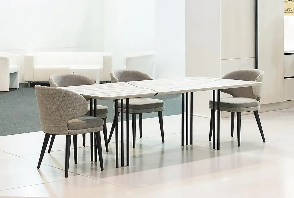 21st Century Kuo Chair, Grey Stain Proof Fabric And Solid Wood, Made In Italy