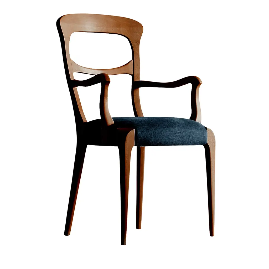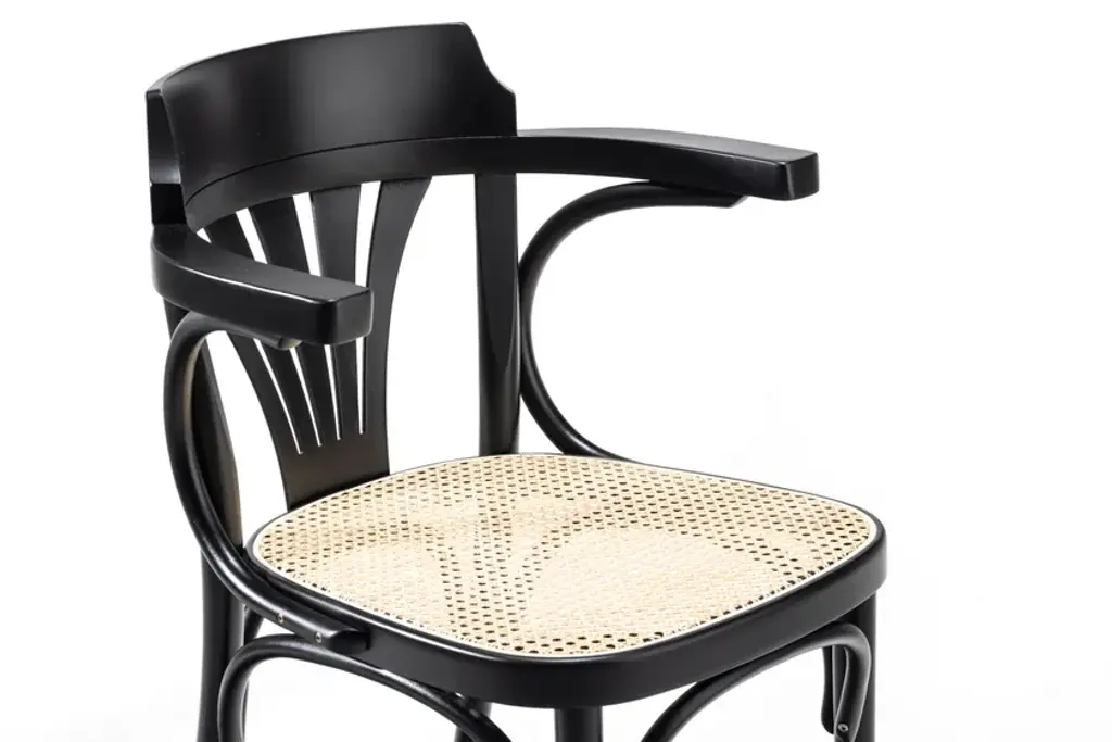 This traditional carver chair with the distinctive fan backrest is very similar to model 24. The difference is the seat size and overall height – the 25 is taller. It can be accessorised with plywood, upholstery, a cane weave and, for an extra fee, decorative studs.