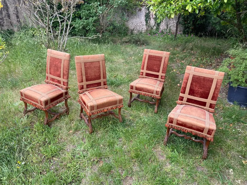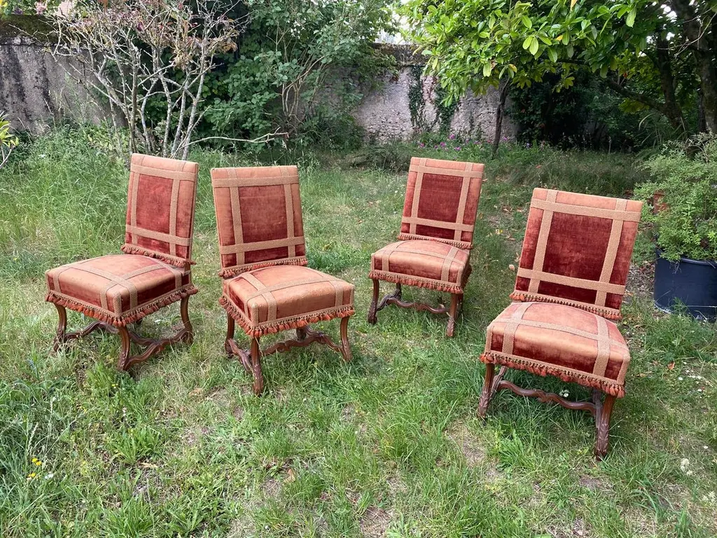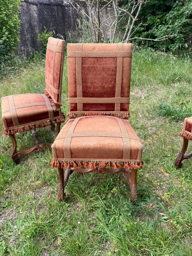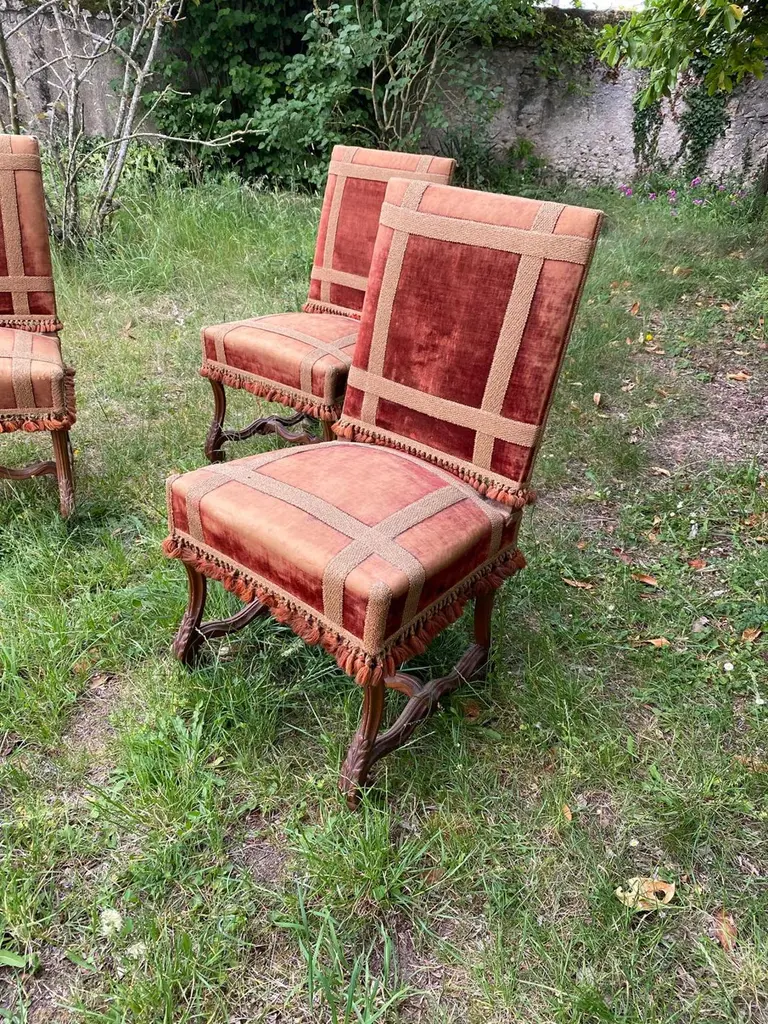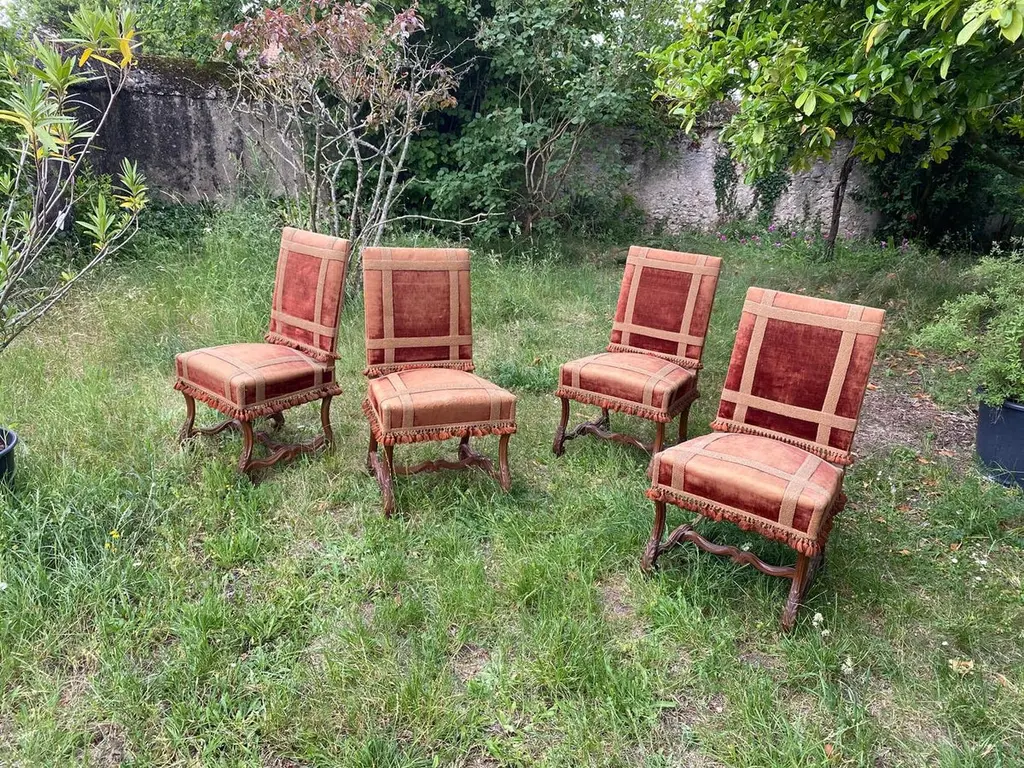4 Large Old Louis Xiv Chairs In Walnut, 19th Century, From A Castle