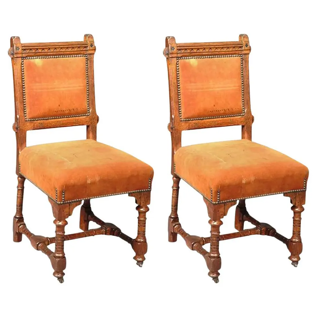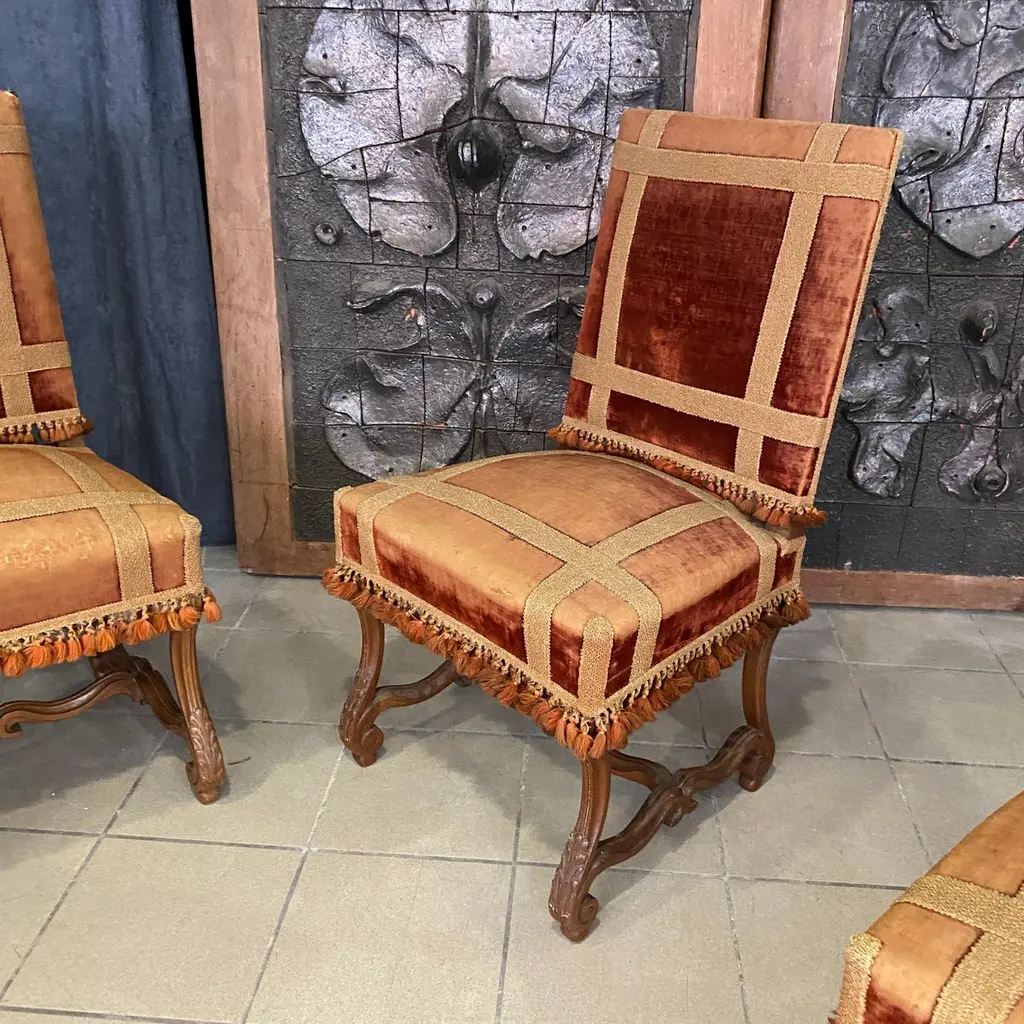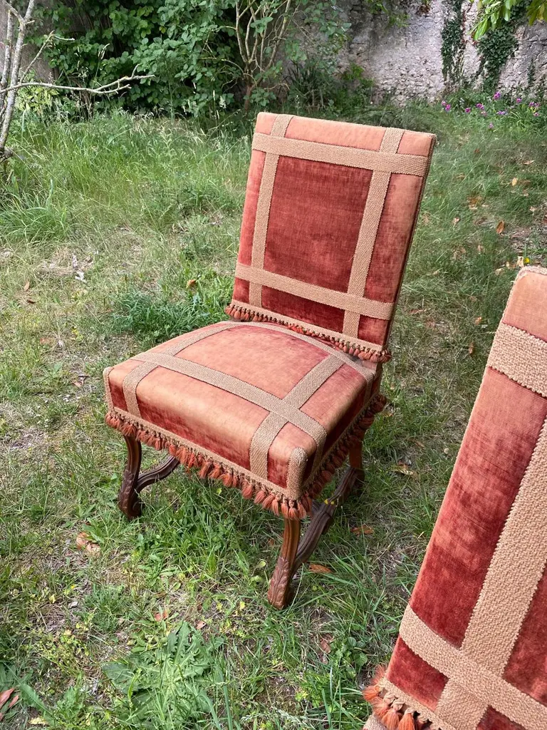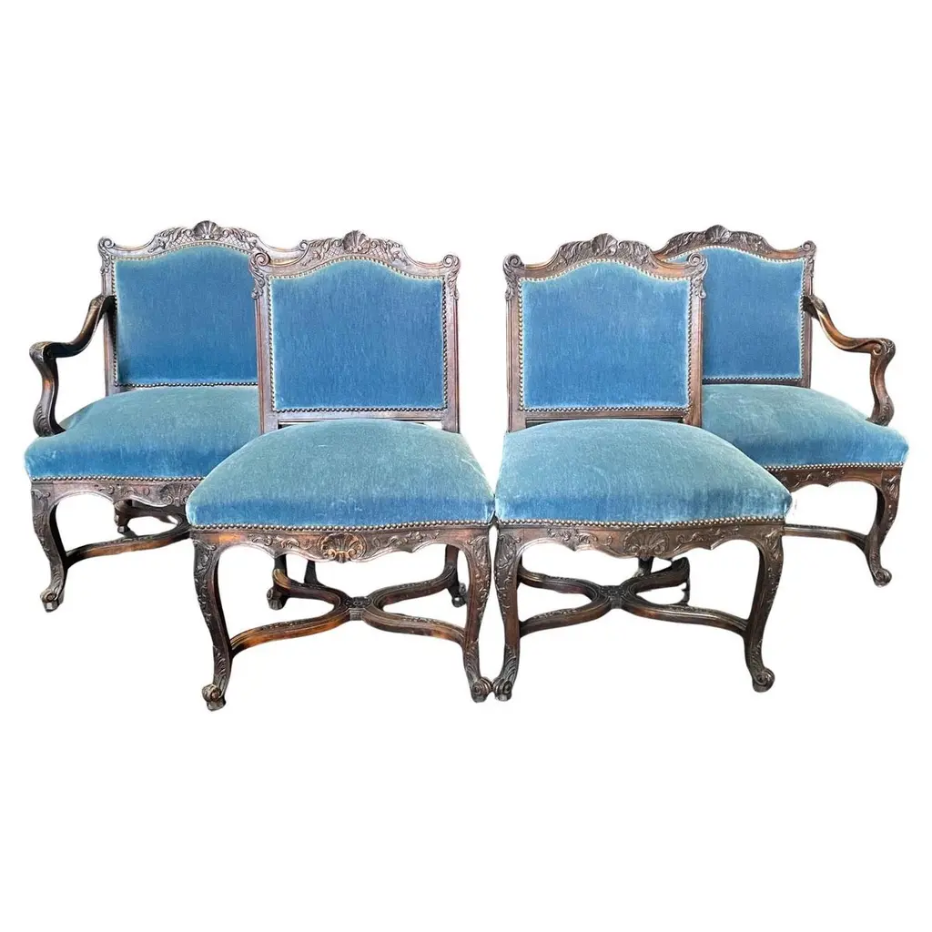 4 Large Old Louis Xiv Chairs In Walnut, 19th Century, From A Castle