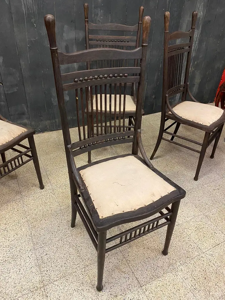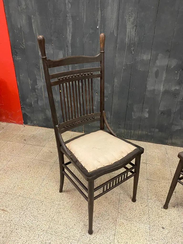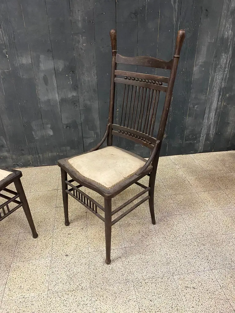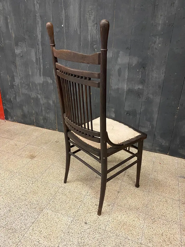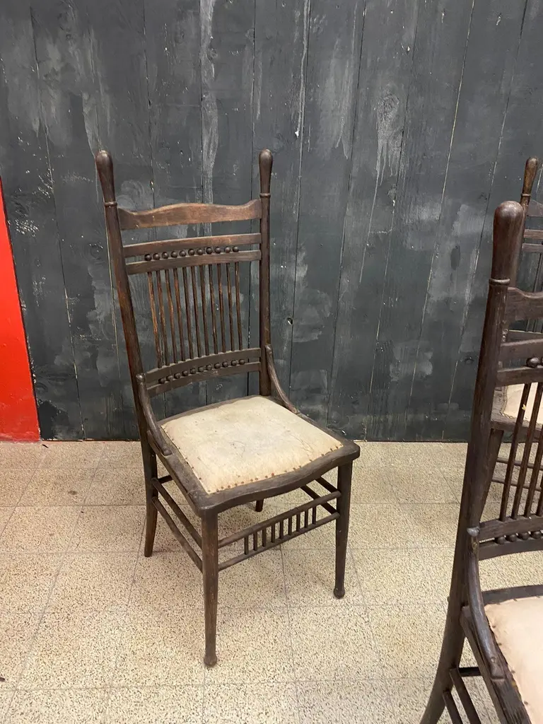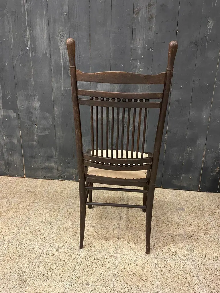 4 original chairs from the 1900 period in oak these chairs are very well made, very light and nevertheless very solid, because although not restored there is no lack or broken bars the price is for 1 chair.