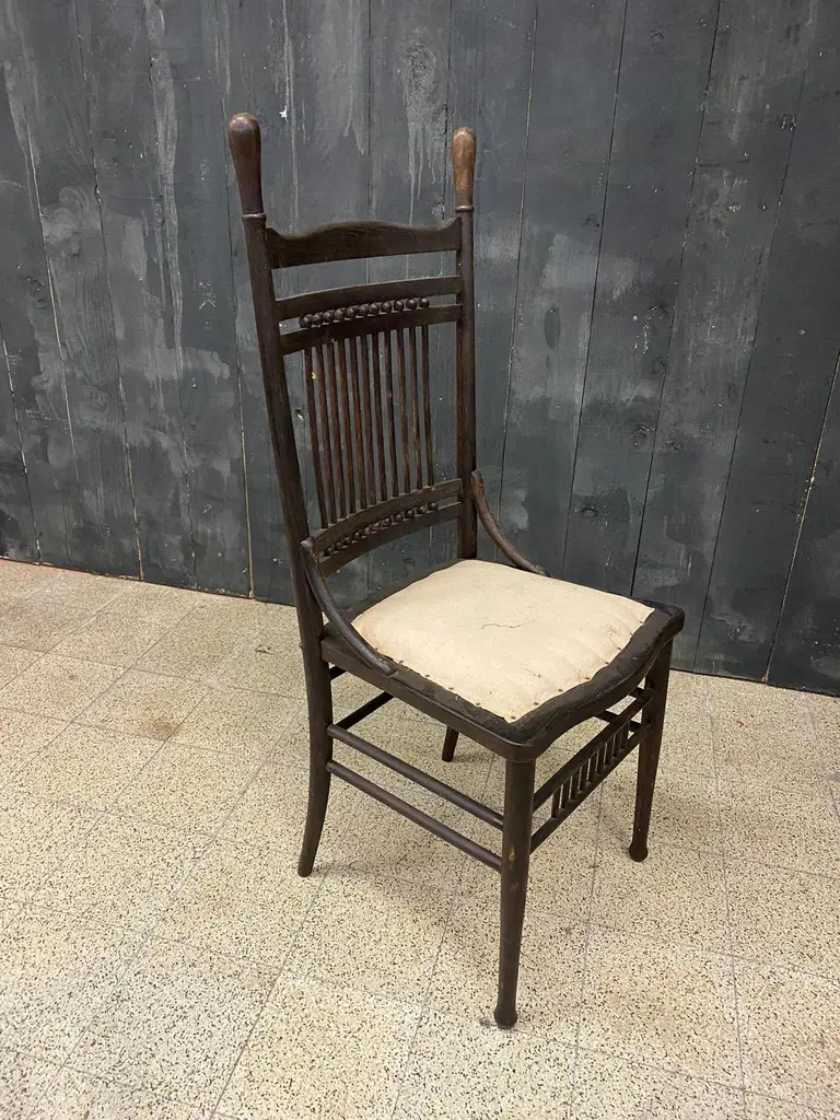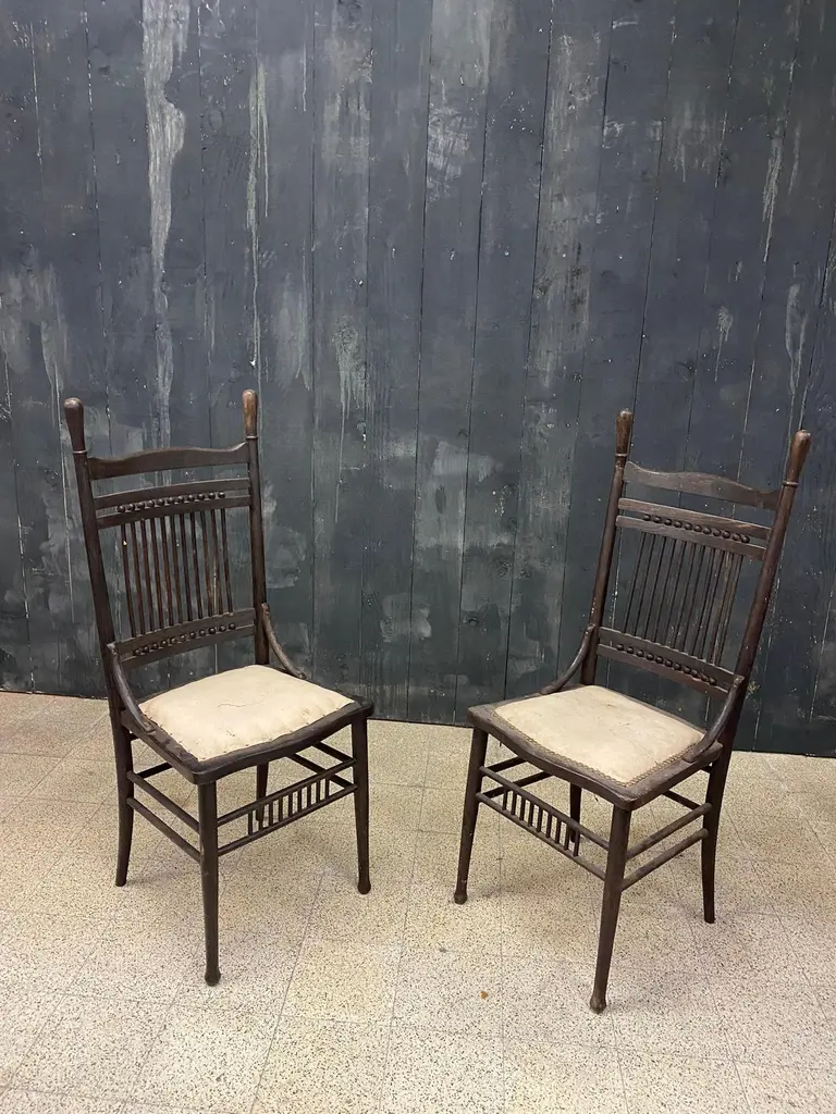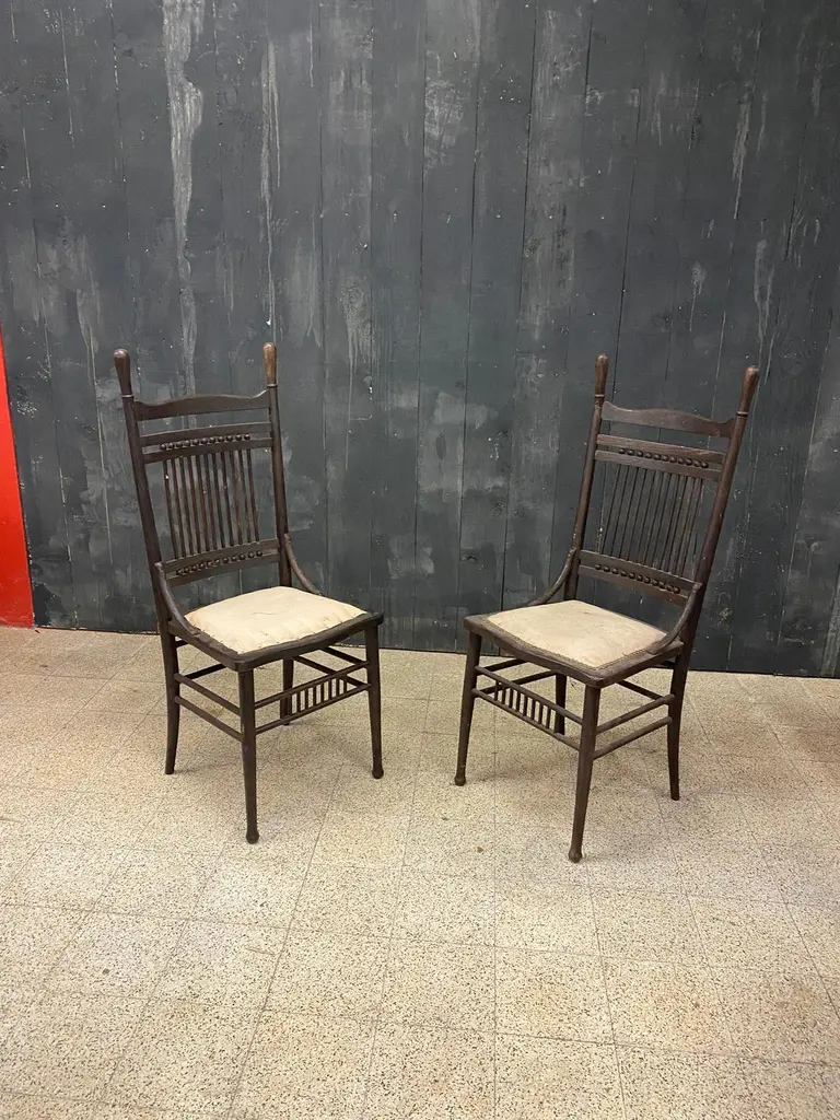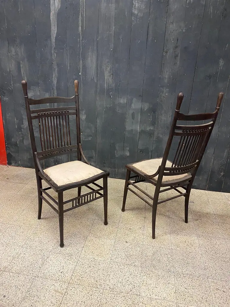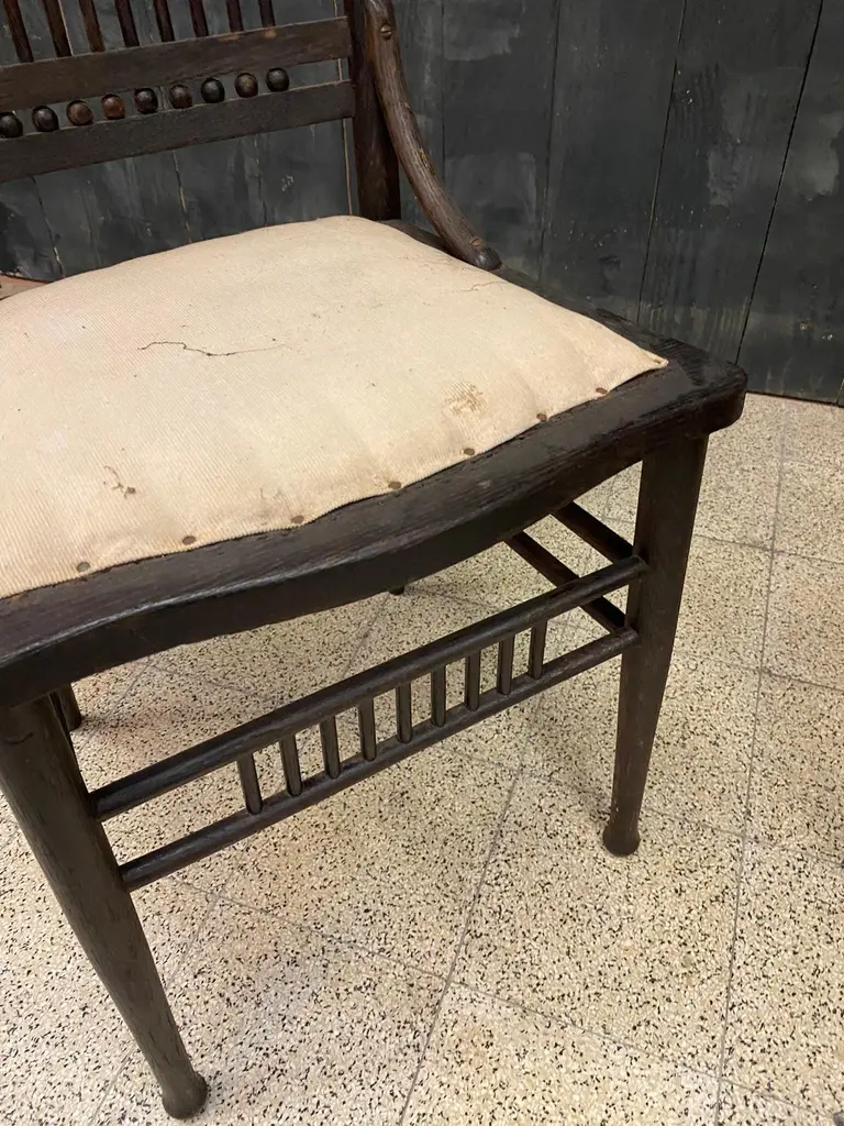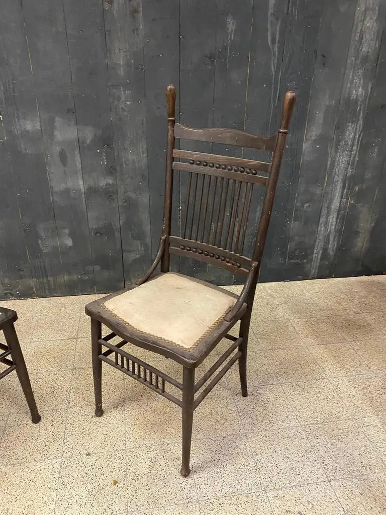 4 original chairs from the 1900 period in oak these chairs are very well made, very light and nevertheless very solid, because although not restored there is no lack or broken bars the price is for 1 chair.