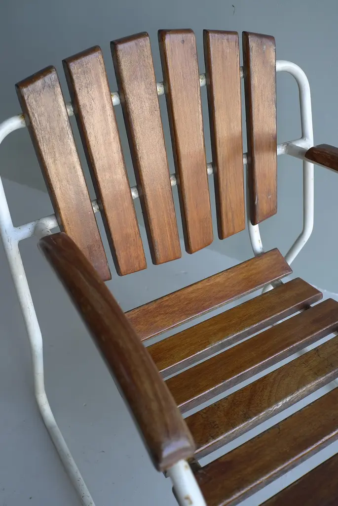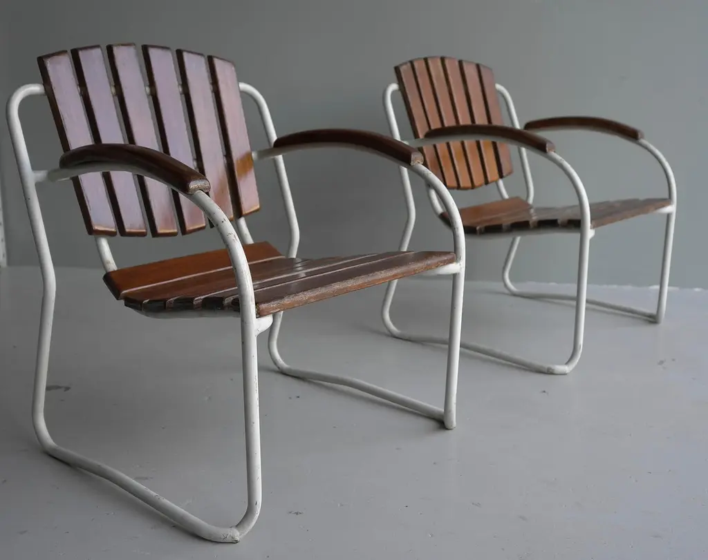 4X Tubular Frame And Slatwood Stackable Garden Chairs, 1930's