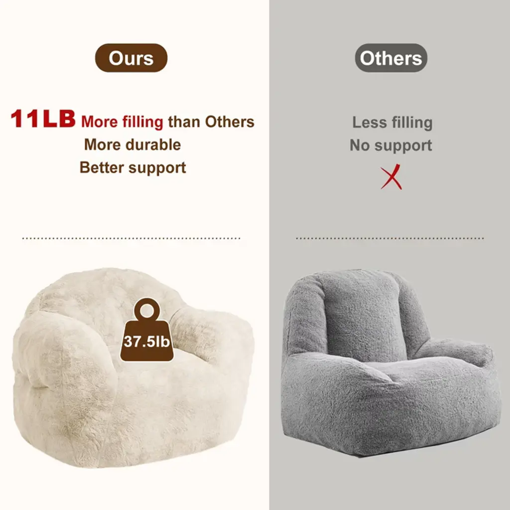 51x41x33 Inch Giant Bean Bag Chair, Plush Rabbit Fur Texture, For Adults Kids High Density Foam Filled Bean Bag Couch With Armrests