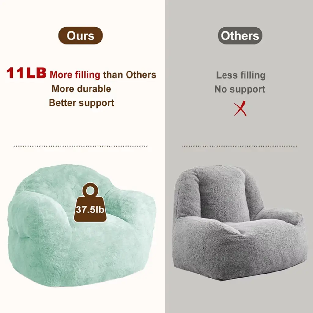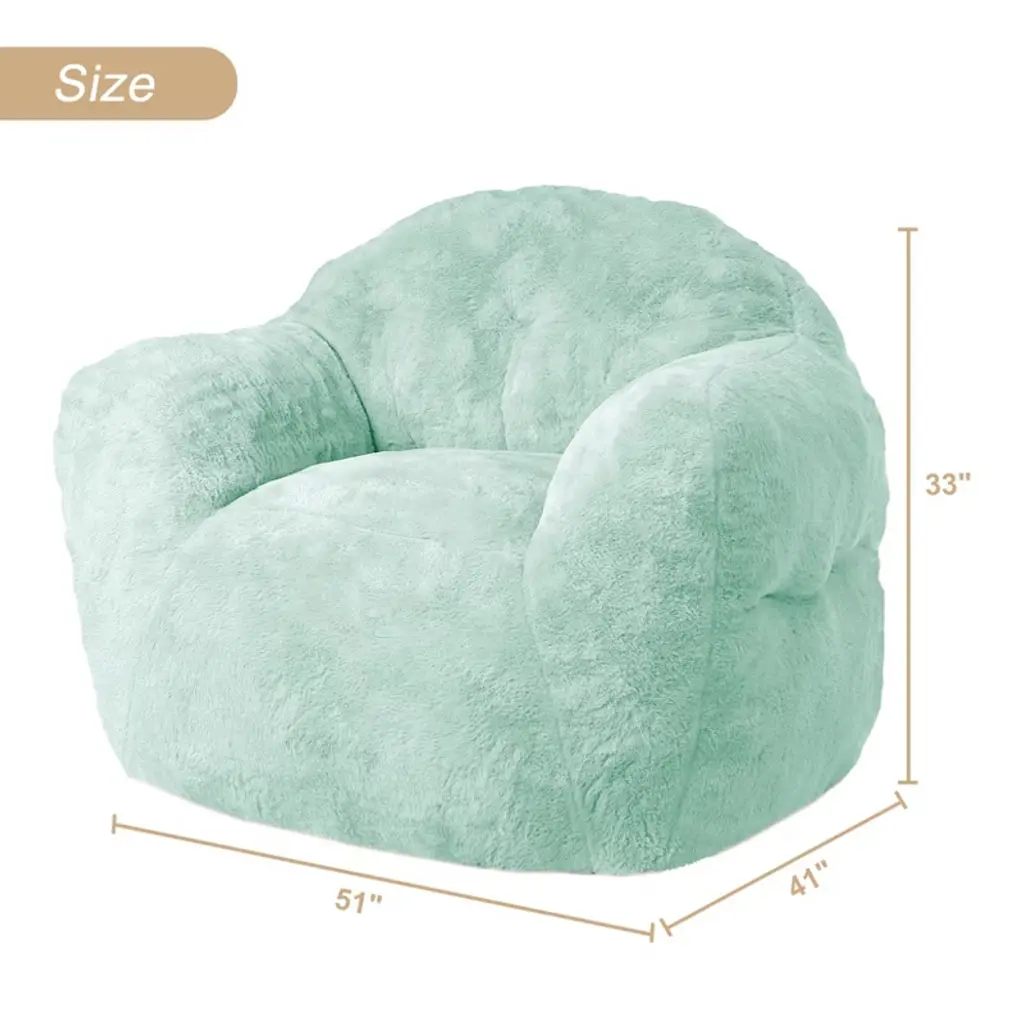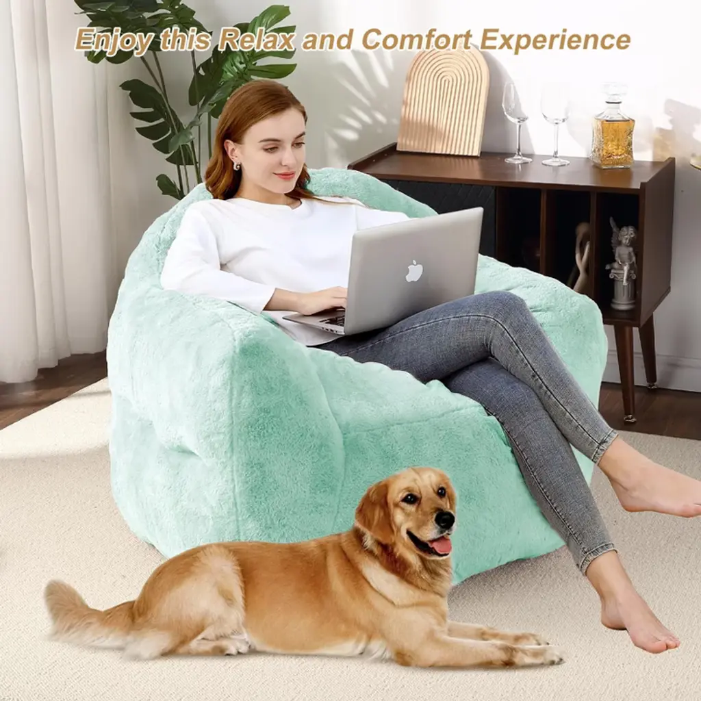 51x41x33 Inch Giant Bean Bag Chair, Plush Rabbit Fur Texture, For Adults Kids High Density Foam Filled Bean Bag Couch With Armrests