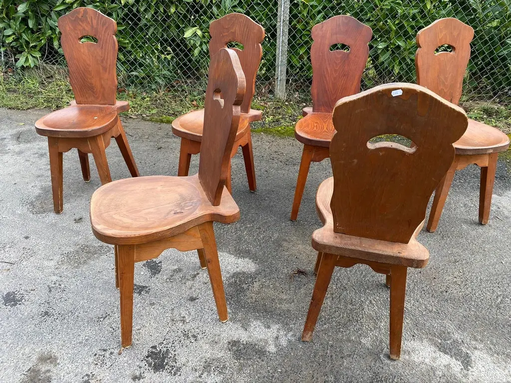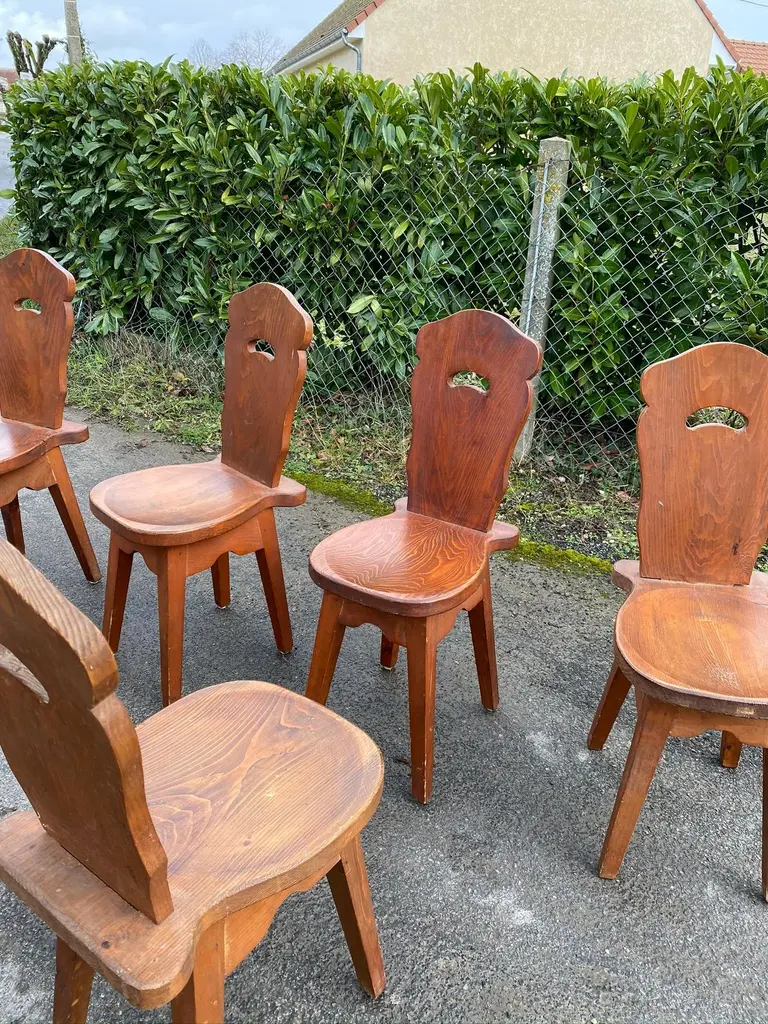 6 Brutalist mountain chairs, in pine circa 1950patina to redo.the price is for one6 are available