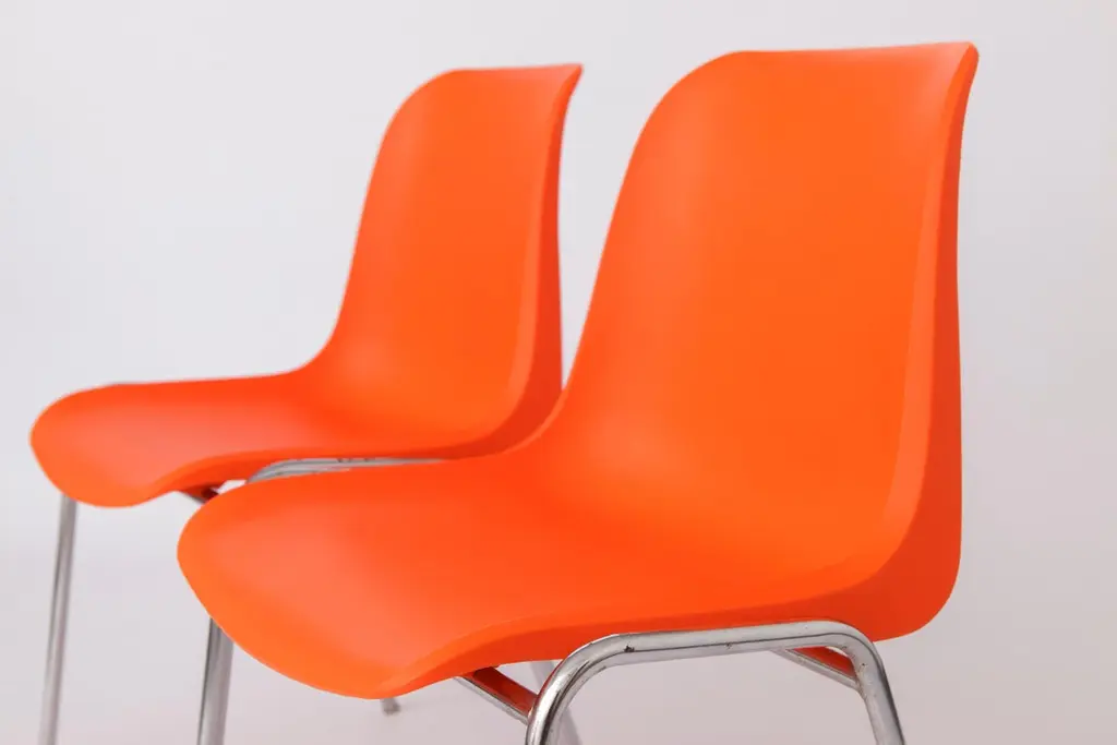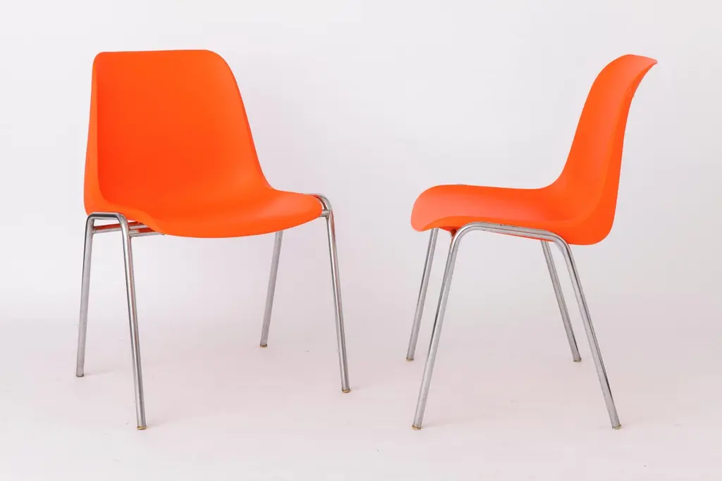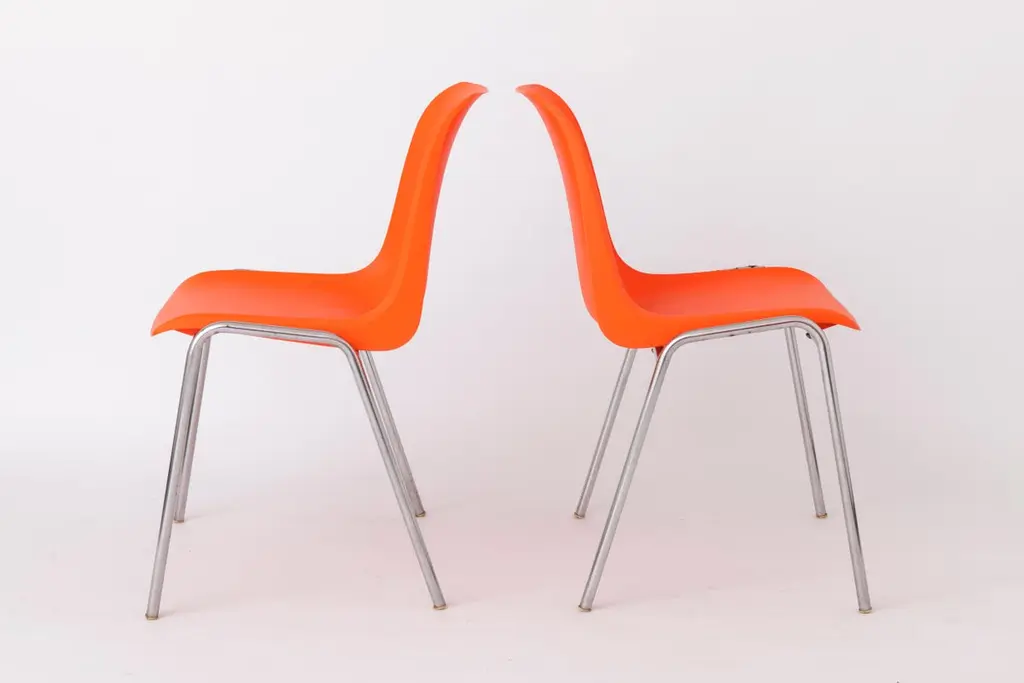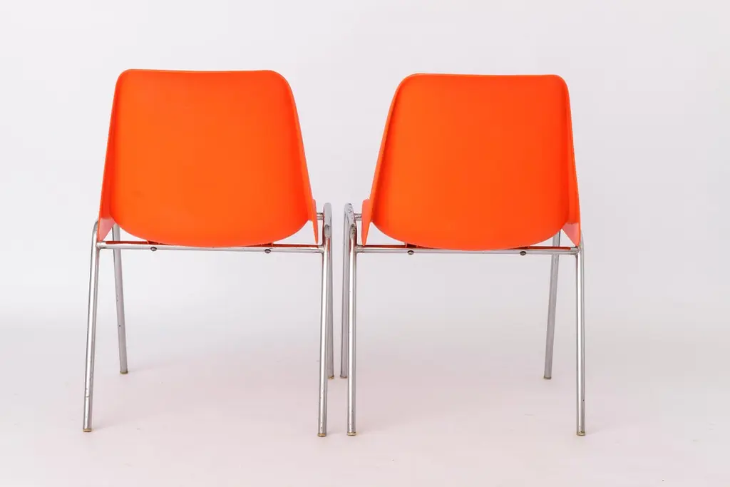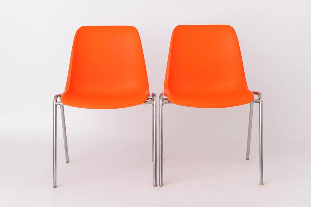Set of 6 Vintage Plastic chairs. Unknown producer. German origin. Production period: 1970s. Displayed price is for 6 chairs. Totally up to 16 available. Please DM if you are interested in a larger set of 8, 12 etc. Good condition. Metal chrome feet and plastic seat. The chromed metal parts have some sings of wear, see photos. Stamp with year of production under the seat.