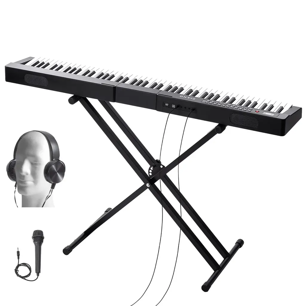 【Multifunctional】: This electronic keyboard features 64-note polyphony, 128 selectable tones, 128 rhythm patterns, and 80 demo songs, equipped with a digital display screen, provide you with more choices to explore the music world. The piano keyboard features play the piano function + automatic accompaniment + teaching + rhythm programming + record playback and other function. 【Perfect for Beginner/Professional】: Compared with other pianos, the function keys of this electric piano have been simplified a lot, more easy to operate, But the functionality has not decreased, and provides detailed instructions to tell beginners how to use the teaching mode, making it easier for beginners to learn. In addition, the "Record" and "Program" functions are designed to record your performance for practice. Follow, one-key and ensemble modes provide more options for beginners. 【Semi-Weighted Keys and Pedal】: Unlike other electronic keyboards, our electronic keyboard piano equipped with 61 semi-weighted keys, providing a more realistic piano key touch; It also comes with a modulation pedal, allowing you to adjust the tone for a softer sound. 【Portable Keyboard Piano】: This keyboard piano can be powered by plug the power adapter into the wall. You can take this compact and lightweight digital piano to any location at home or in the classroom for party performances or family play. Dimensions is 35.4" (L) x 9.1" (W) x 2.8" (H), Weight:8.4LB. 【Perfect Gifts for Birthday or Christmas】: This piano keyboard is a great gift for kids, friends, patients, piano beginners and so on. The person who receives this gift will be thankful and happy. Give it for your favorite person. And we will provide you with 24-hour customer service, and you can contact us anytime if you have any questions. Product information Power Source:Corded Electric Connectivity Technology:Auxiliary Special Features:Portable Number of Keys:61 Skill Level:Beginner Style:Modern Item Weight:6.2 Pounds