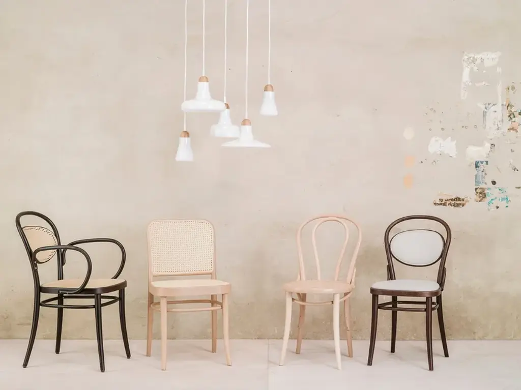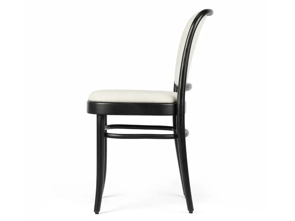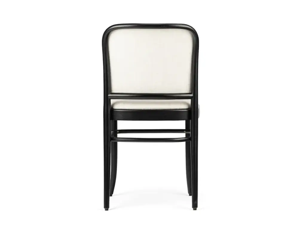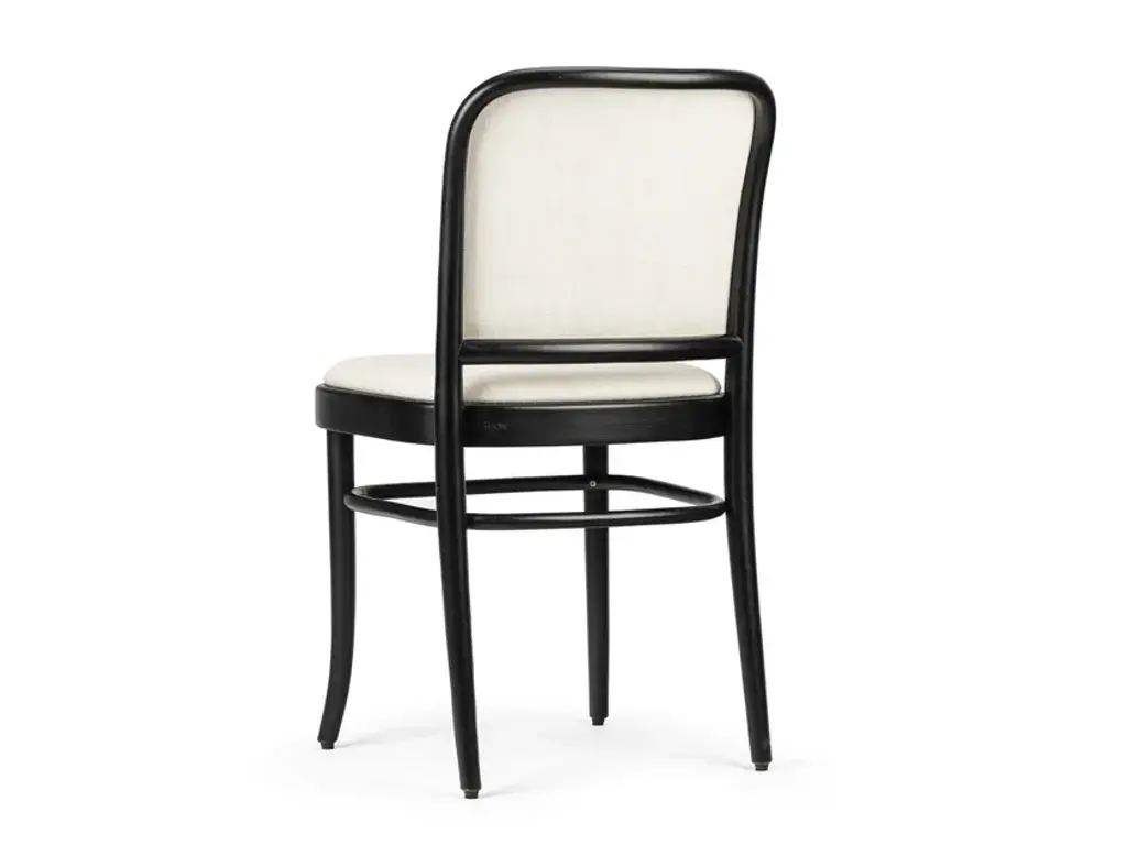 811 is a wooden chair by Ton A.S.The armchair, inspired by a model from 1930 by Josef Hoffmann, blends his interest in Art Nouveau and simple shapes with manufacturing processes applied in Bystrice pod Hostynem since 1861. The armchair is therefore more geometrical, but bears the clear features of the manual bending technique of TON. This armchair variant combines an upholstered seat with a woven cane backrest.