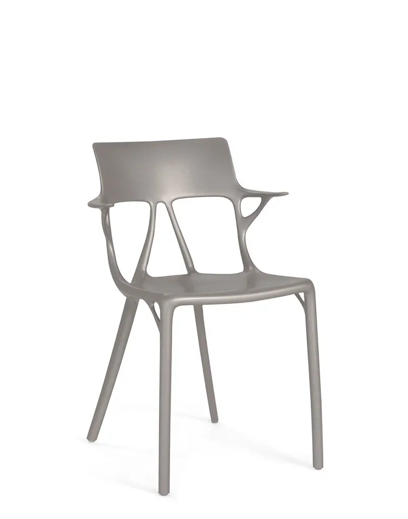 Kartell continues its ongoing commitment to sustainability with eco-friendly products which are part of the broader project expressed by the industrial manifesto Kartell loves the planet. A.I. is the chair created for the first time ever using recycled material, in which aesthetics and structural requirements remain unaltered, blending seamlessly with generative design. The added value of A.I. lies in the fact that it is the first product family conceived by Artificial Intelligence in response to input received from the designer (Philippe Starck) and the know-how of the company (Kartell). Specifically, creative thinking, company know-how and artificial intelligence have merged to develop a chair model based on an algorithm that respects the original brief of the designer and the company a comfortable product with the structural strength and solidity required while upholding one of Kartell’s main values: to be an injection-moulded industrial product of outstanding aesthetic quality.