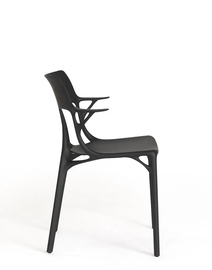 Kartell continues its ongoing commitment to sustainability with eco-friendly products which are part of the broader project expressed by the industrial manifesto Kartell loves the planet. A.I. is the chair created for the first time ever using recycled material, in which aesthetics and structural requirements remain unaltered, blending seamlessly with generative design. The added value of A.I. lies in the fact that it is the first product family conceived by Artificial Intelligence in response to input received from the designer (Philippe Starck) and the know-how of the company (Kartell). Specifically, creative thinking, company know-how and artificial intelligence have merged to develop a chair model based on an algorithm that respects the original brief of the designer and the company a comfortable product with the structural strength and solidity required while upholding one of Kartell’s main values: to be an injection-moulded industrial product of outstanding aesthetic quality.