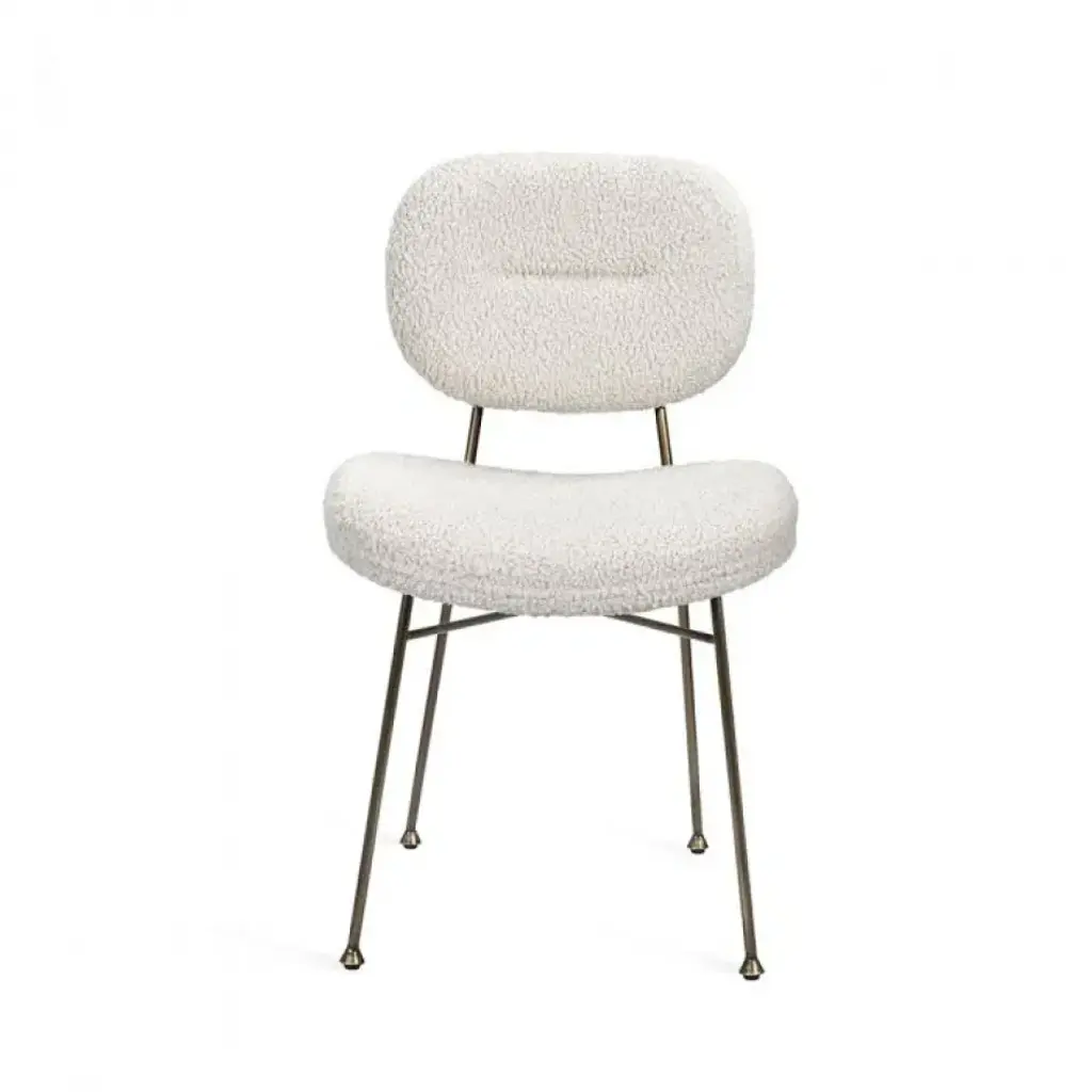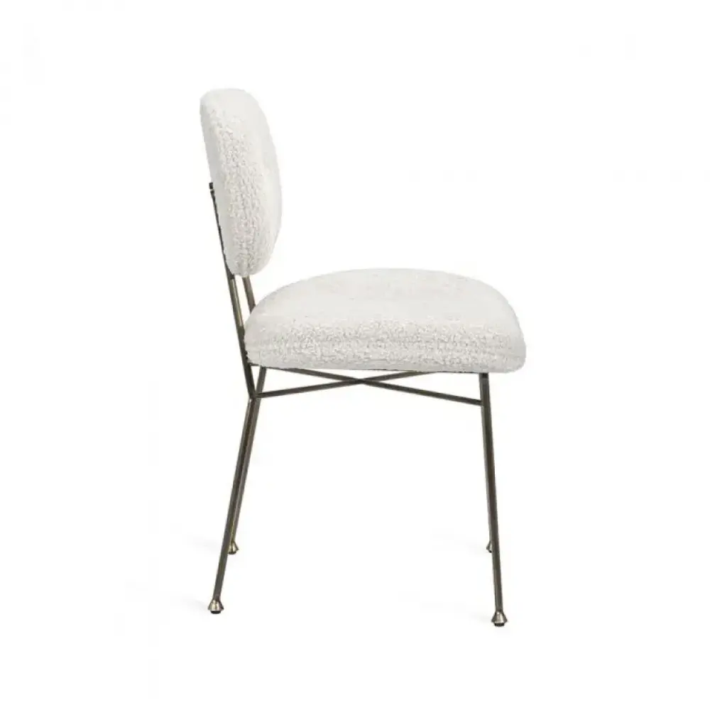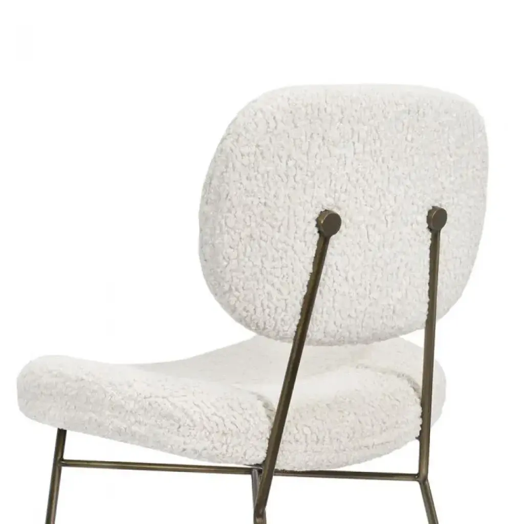 At once elegant and modern, the Abner Chair boasts faux shearling upholstery supported by stainless steel legs in an antique bronze finish.