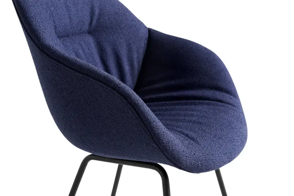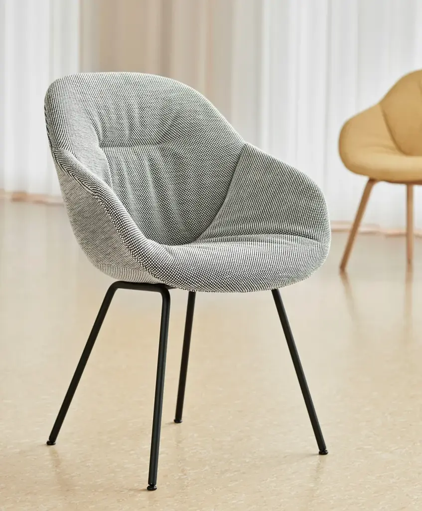 The AAC 127 Soft fuses the sleek, elegant aesthetic of the four-legged steel frame with the softness and warmth of the quilted shell. Retaining the same high backrest and generous seat that characterises the series, this design features a functional base with angled legs that slant slightly outwards for optimal stability. The base is available in chrome and powder coated finishes, and the quilted shell is offered in a variety of upholstery options, providing a multitude of design combinations that give this series versatility in a wide range of corporate, public, and private contexts. 10 mm injection moulded polypropylene with 10% glass fibre. Full upholstered. 15 mm cut foam, 15 mm super soft cut foam and 40 mm wadding. 4 leg base in Ø18 mm bent steel tube. Available in a large selection of standard fabrics and leathers. Available in 2 different base finishes:- Black powder coated steel (RAL 9005) - Chromed steel