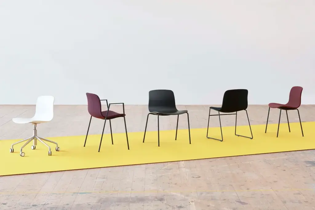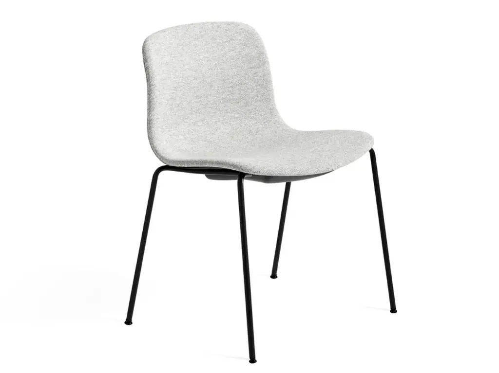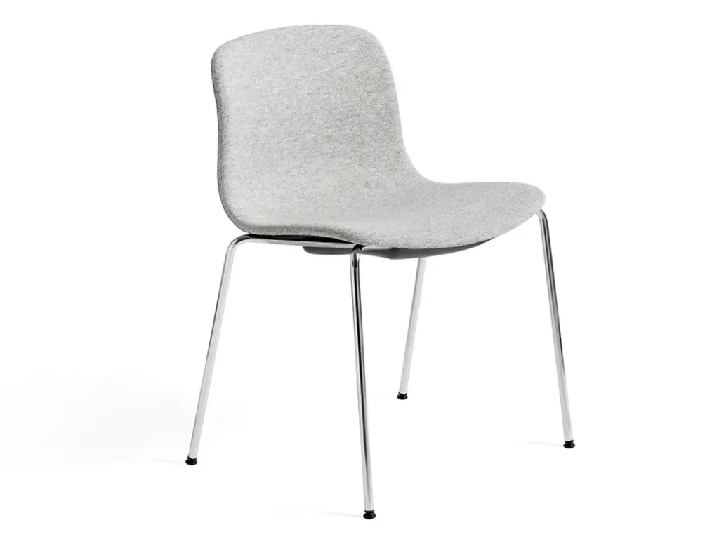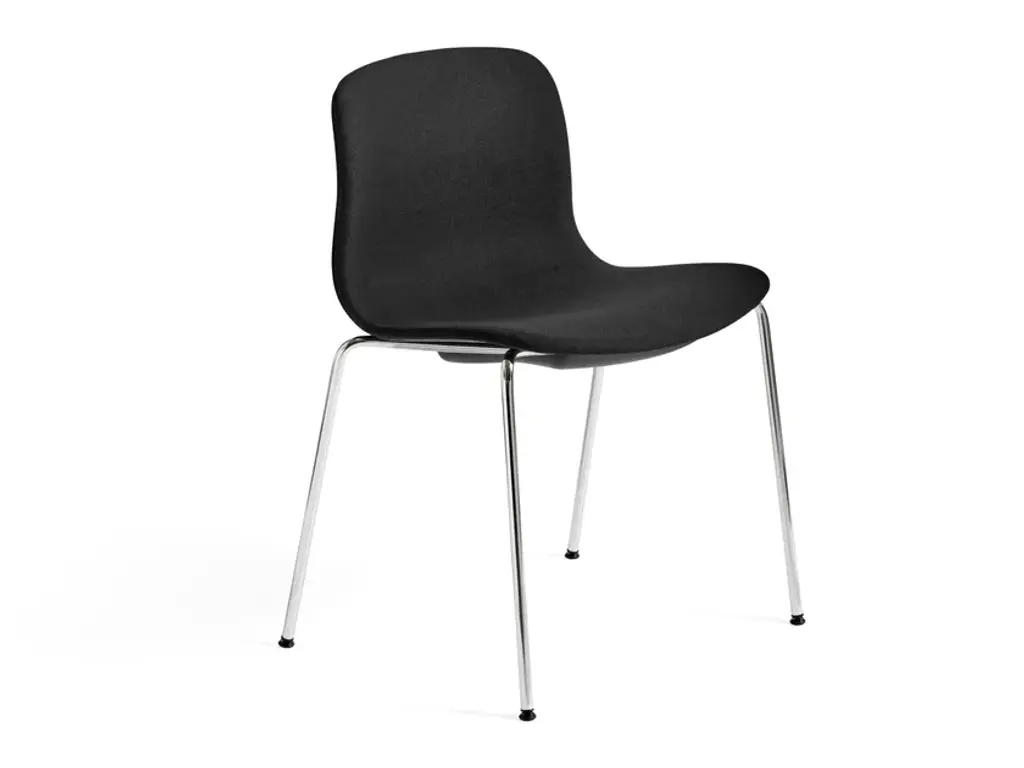 With its clean, curved lines and slim, symmetrical legs, About A Chair AAC 17 retains the same minimalistic qualities as the rest of the family. Designed with functionality and versatility in mind, the four legs are positioned under the seat at a rounded angle to frame the upright, organic shell for optimal comfort and stackability. The legs are available in chrome and powder coated finishes, while the shell comes in diverse colour and upholstery options, allowing a multitude of design combinations that make this series so flexible. Injection moulded polypropylene shell without armrest with full upholstery. Shell thickness: 10 mm polypropylene with 10 mm foam. 4-legged base in Ø16 mm bent steel tube. Available in a large selection of standard fabrics and leathers. Available in 3 different base finishes:- Black powder coated aluminium (RAL 9005) - White powder coated aluminium (RAL 9003)- Chromed steel