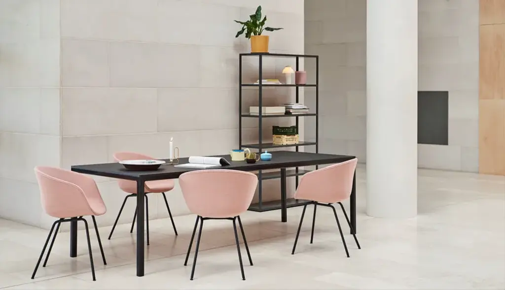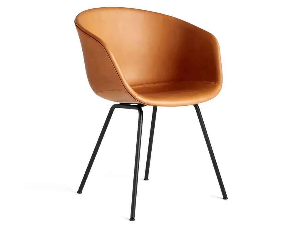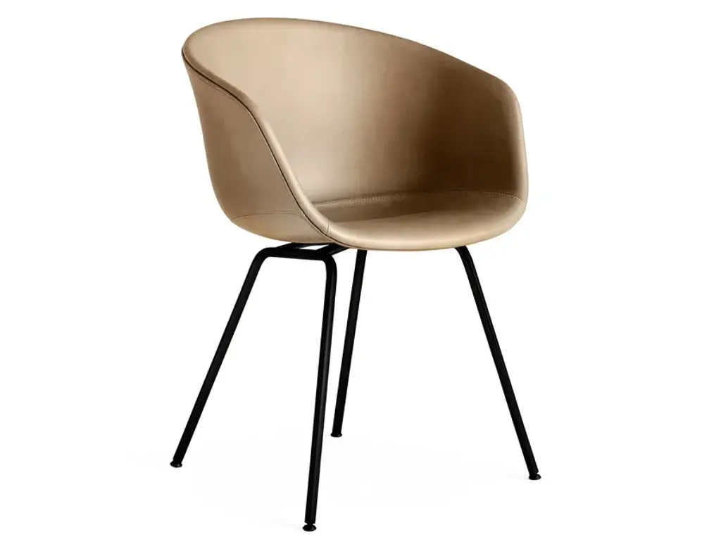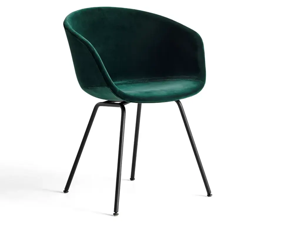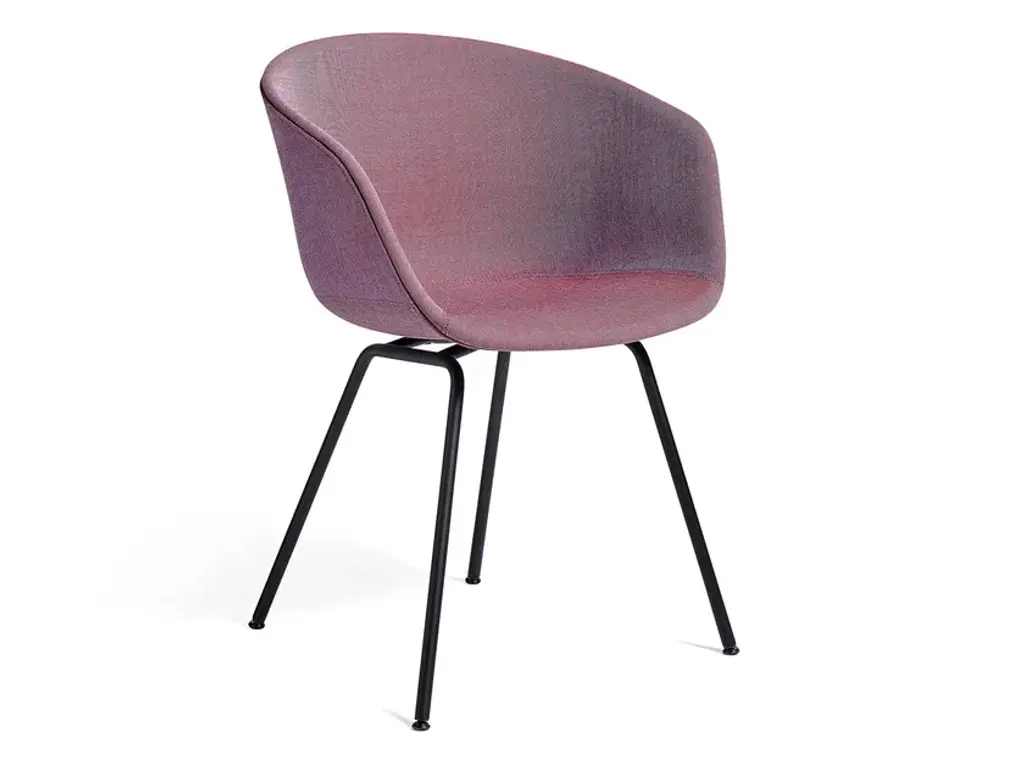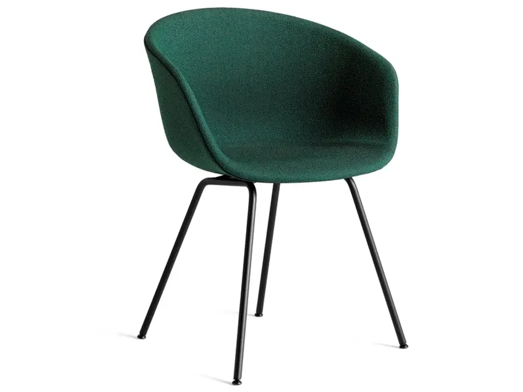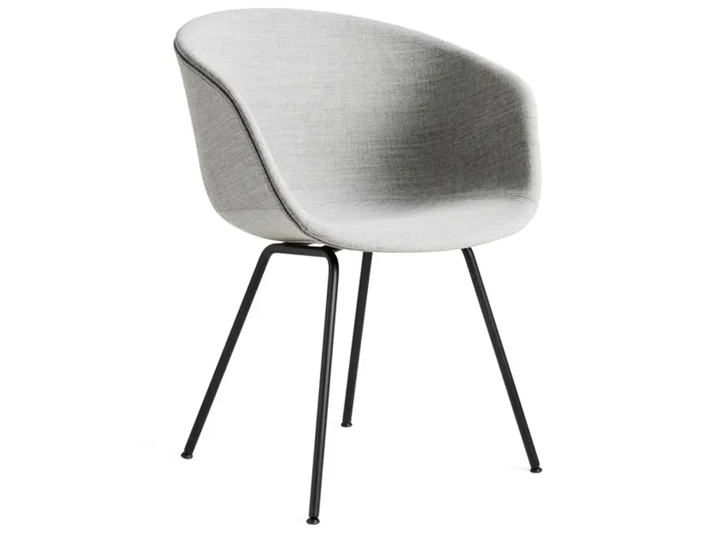 The About a Chair AAC 27 design exudes the functional simplicity that is characteristic of this entire series. The solid shell comprises a curved back with armrests in fully upholstered polypropylene, providing excellent comfort and a soft, unified silhouette, while the four-legged bent steel tube base reinforces the minimalistic expression and ensures optimal durability. Available in a wide range of different textiles and base finishes, this multi-functional chair offers the opportunity to create numerous design combinations for private or public settings. Injection moulded polypropylene shell with armrest with full upholstery. Shell thickness: 10 mm polypropylene with 10 mm foam 4-legged base in Ø18 mm bent steel tube. Available in a large selection of standard fabrics and leathers. Available in 3 different base finishes: - Black powder coated steel (RAL 9005)- White powder coated steel (RAL 9003)- Chromed steel