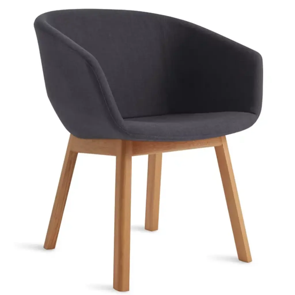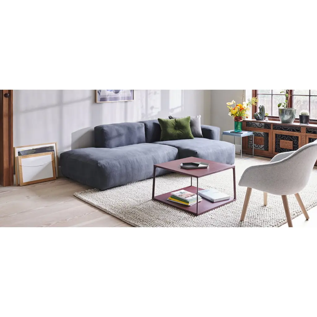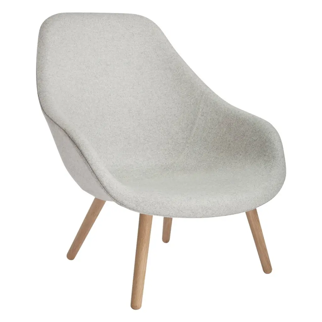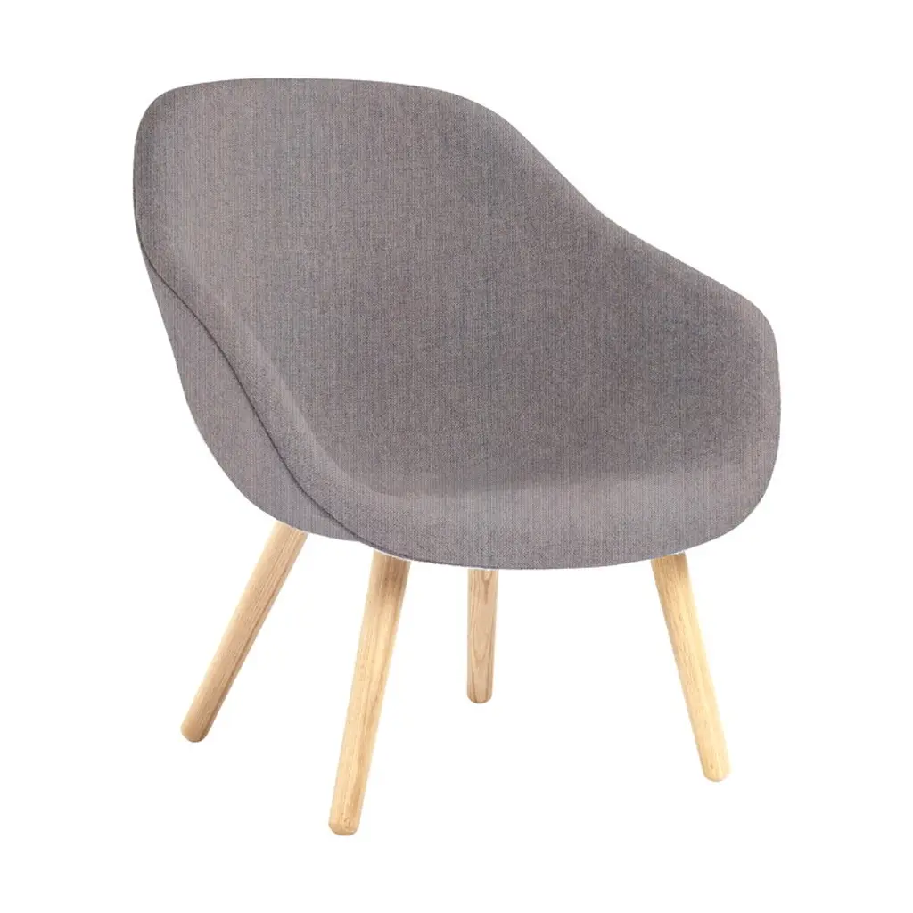 About A Lounge Chair AAL82 by HAY combines a sleek oak frame with a streamlined polypropylene seat upholstered in elegant and durable fabric. A result of close collaboration between designer Hee Welling and HAY, About A Chair is a collection of outstanding simplicity and combinability. With About A Chair collection, Welling wanted to reach a new level in the combination of shape, function, comfort, detail, and esthetic. The idea behind the collection was to develop a chair which works well around the dining table, around a conference table, as well as in a restaurant, cafeteria or at the office. Due to their simple and plain design, the chairs can be combined with many types of furniture and interiors. In 2021, HAY renewed the surface treatments of its wood furniture by replacing their paints and lacquers with more environmentally friendly, water-based alternatives. This chair is of newer production and has been finished with a water-based lacquer.