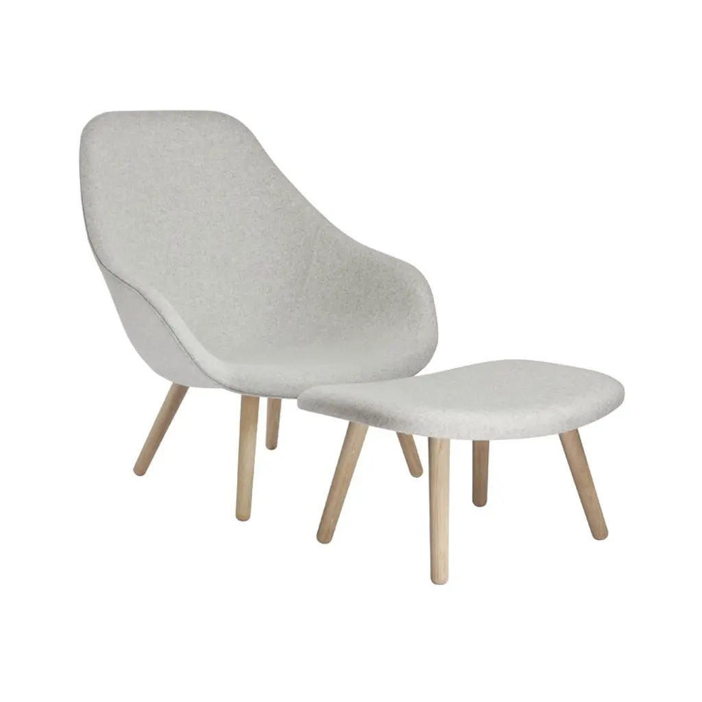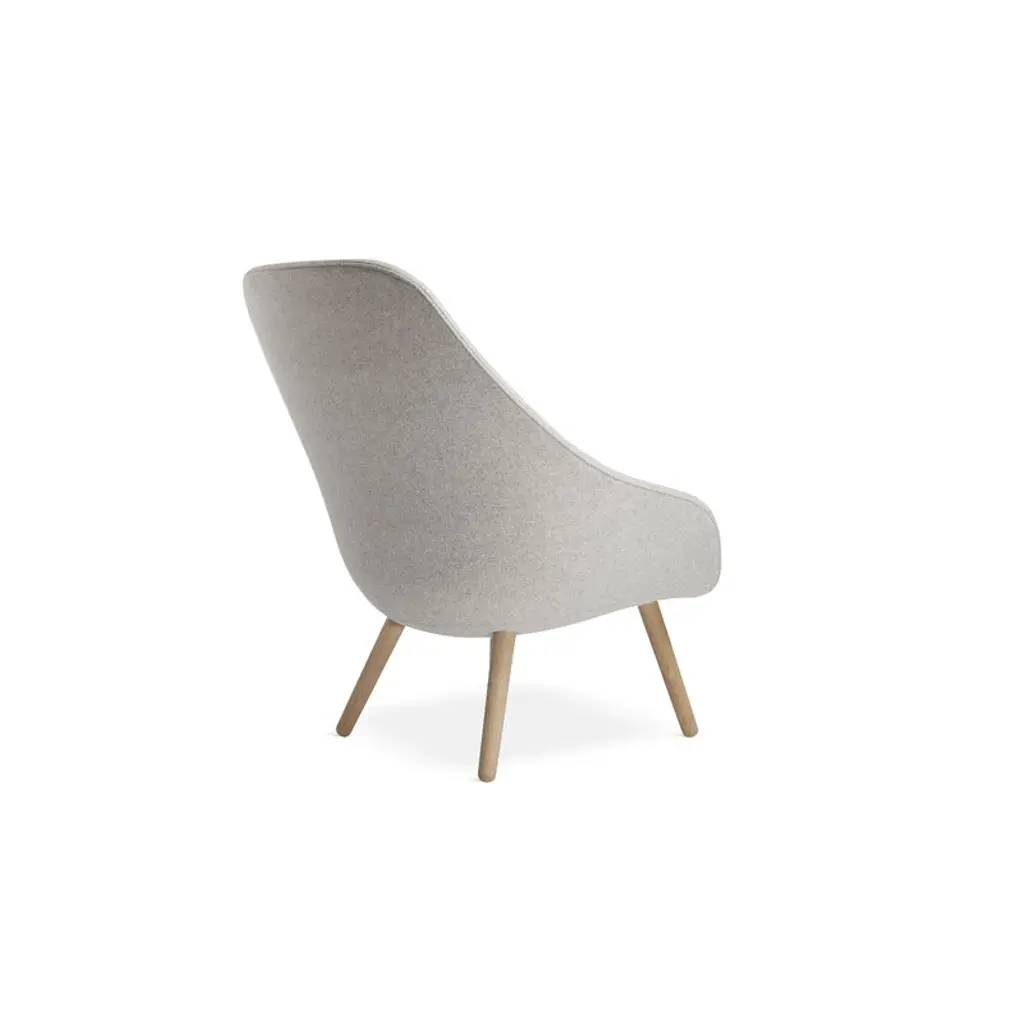 About A Lounge Chair AAL92 by HAY combines a sleek oak frame with a streamlined polypropylene seat upholstered in elegant and durable fabric. A result of a close collaboration between designer Hee Welling and HAY, About A Chair is a collection of outstanding simplicity and combinability. With About A Chair collection, Welling wanted to reach a new level in the combination of shape, function, comfort, detail, and esthetic. The idea behind the collection was to develop a chair which works well around the dining table, around a conference table, as well as in a restaurant, cafeteria or at the office. Due to their simple and plain design, the chairs can be combined with many types of furniture and interiors. In 2021, HAY renewed the surface treatments of its wood furniture by replacing paints and lacquers with more environmentally friendly, water-based alternatives. This chair is of newer production and has been finished with a water-based lacquer.