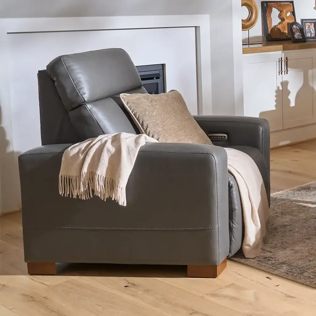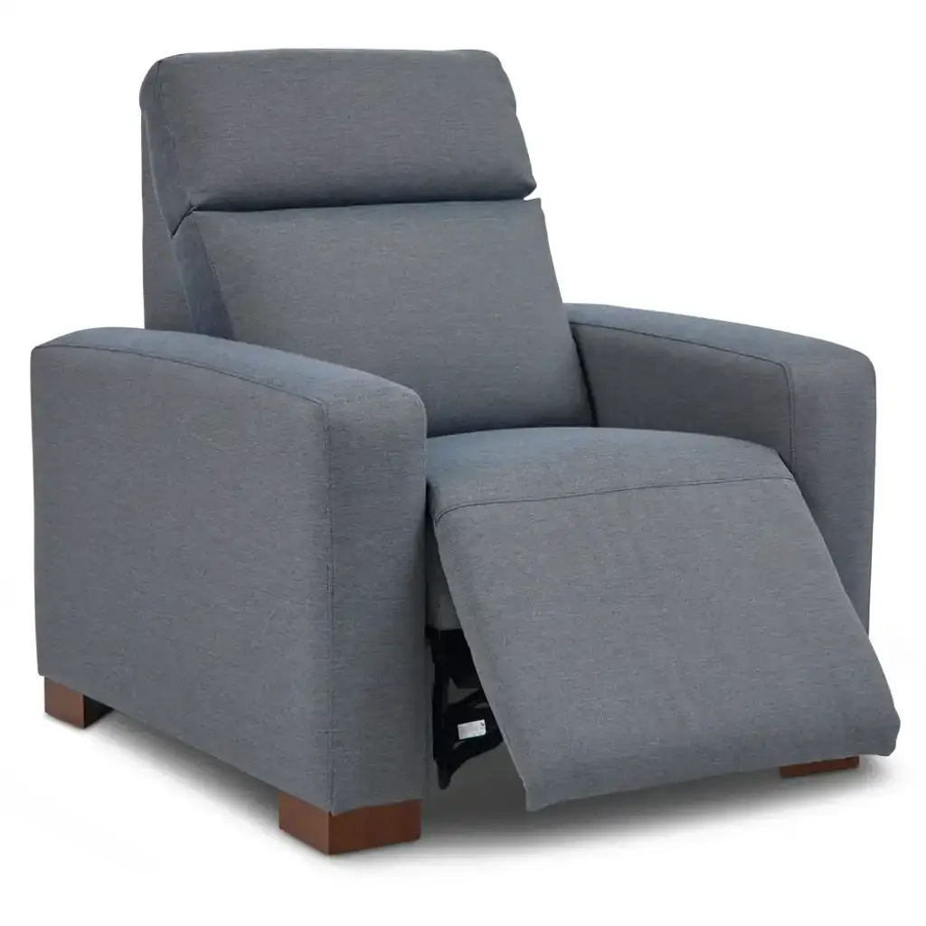 Bold track arms border a sleek waterfall chaise seat and legrest, giving the Acadia Power Reclining Chair with Headrest bright, modern energy. Its tall linear back, power-tilt headrest and zero gravity recline deliver luxurious cutting-edge comfort.