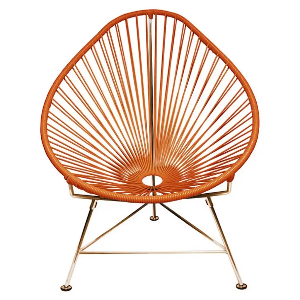 The Innit Designs Acapulco Outdoor Chair is cool in more ways than one. Based on the original 1950s design, it has an open and airy yet ergonomic and supportive open weave vinyl seat inspired by traditional Mayan hammock weaving techniques. The pear-shaped seat and architectural steel frame give the chair a retro-modern aesthetic suitable both indoors and out. Note: Chrome and copper frame finishes are suitable for indoor use only.