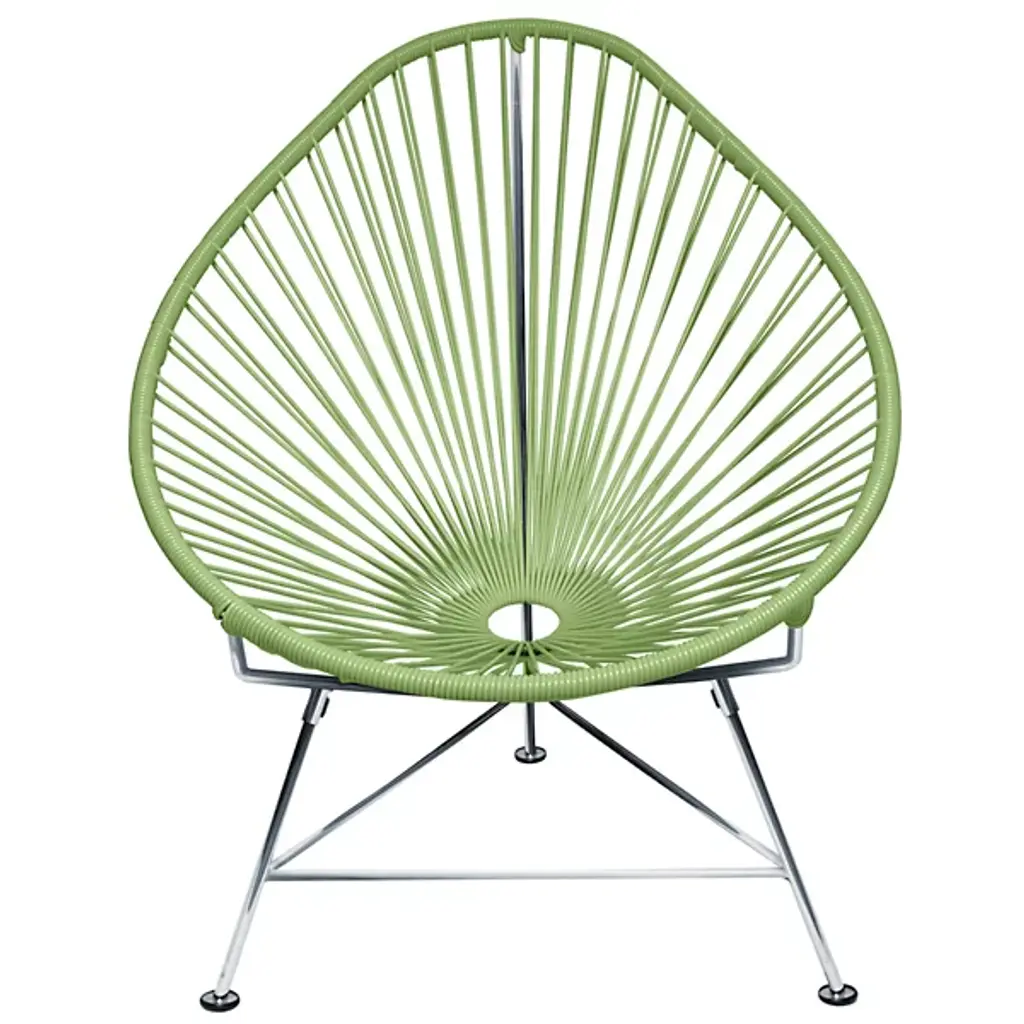 The Innit Designs Acapulco Outdoor Chair is cool in more ways than one. Based on the original 1950s design, it has an open and airy yet ergonomic and supportive open weave vinyl seat inspired by traditional Mayan hammock weaving techniques. The pear-shaped seat and architectural steel frame give the chair a retro-modern aesthetic suitable both indoors and out. Note: Chrome and copper frame finishes are suitable for indoor use only.