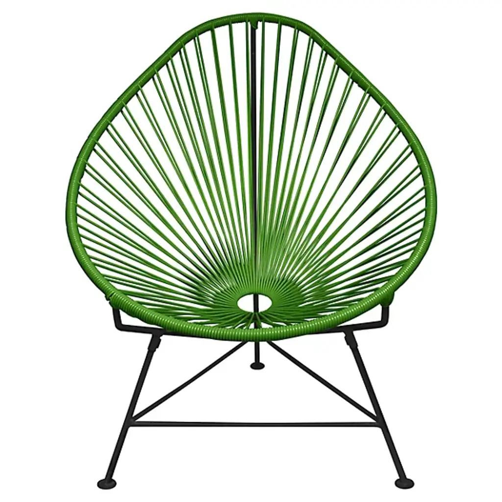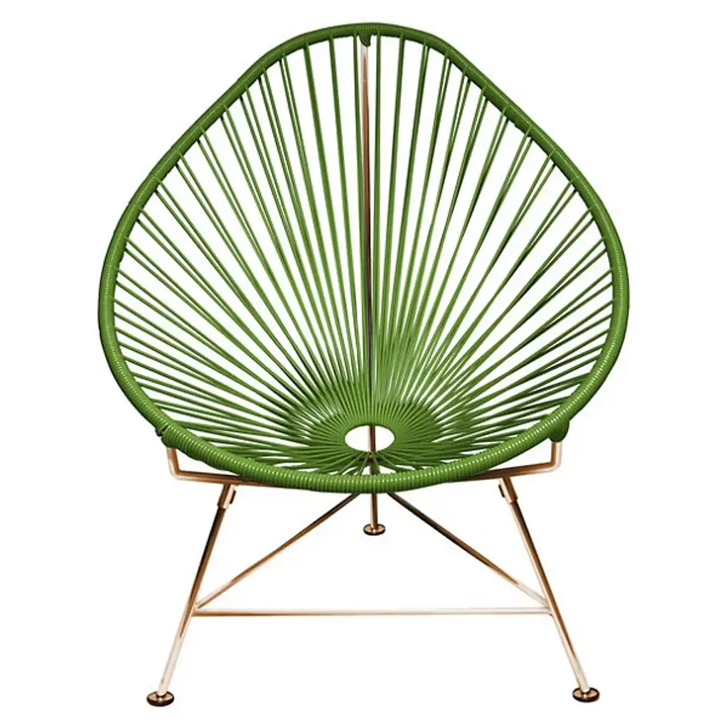 The Innit Designs Acapulco Outdoor Chair is cool in more ways than one. Based on the original 1950s design, it has an open and airy yet ergonomic and supportive open weave vinyl seat inspired by traditional Mayan hammock weaving techniques. The pear-shaped seat and architectural steel frame give the chair a retro-modern aesthetic suitable both indoors and out. Note: Chrome and copper frame finishes are suitable for indoor use only.