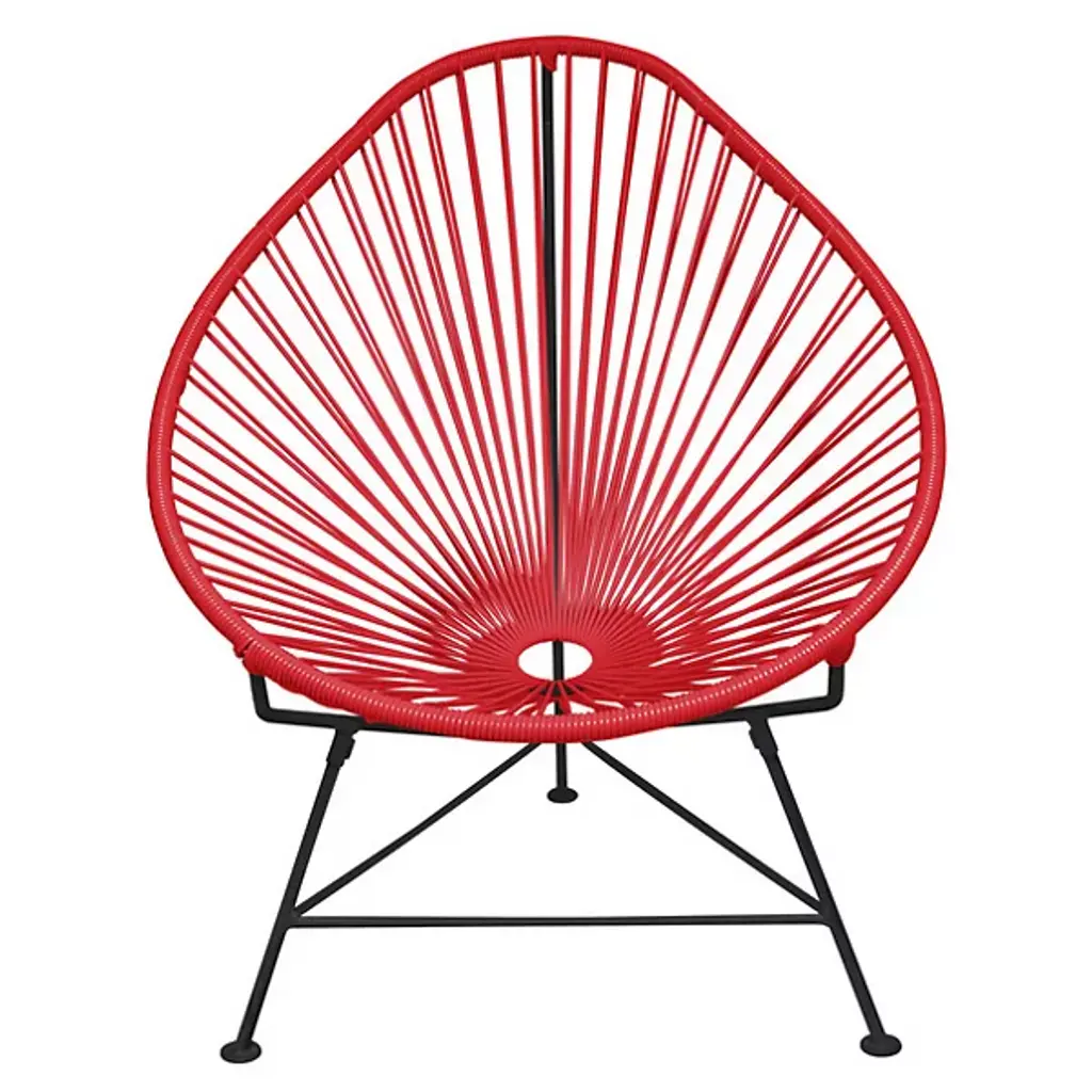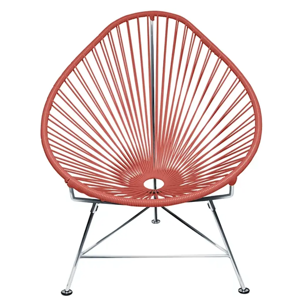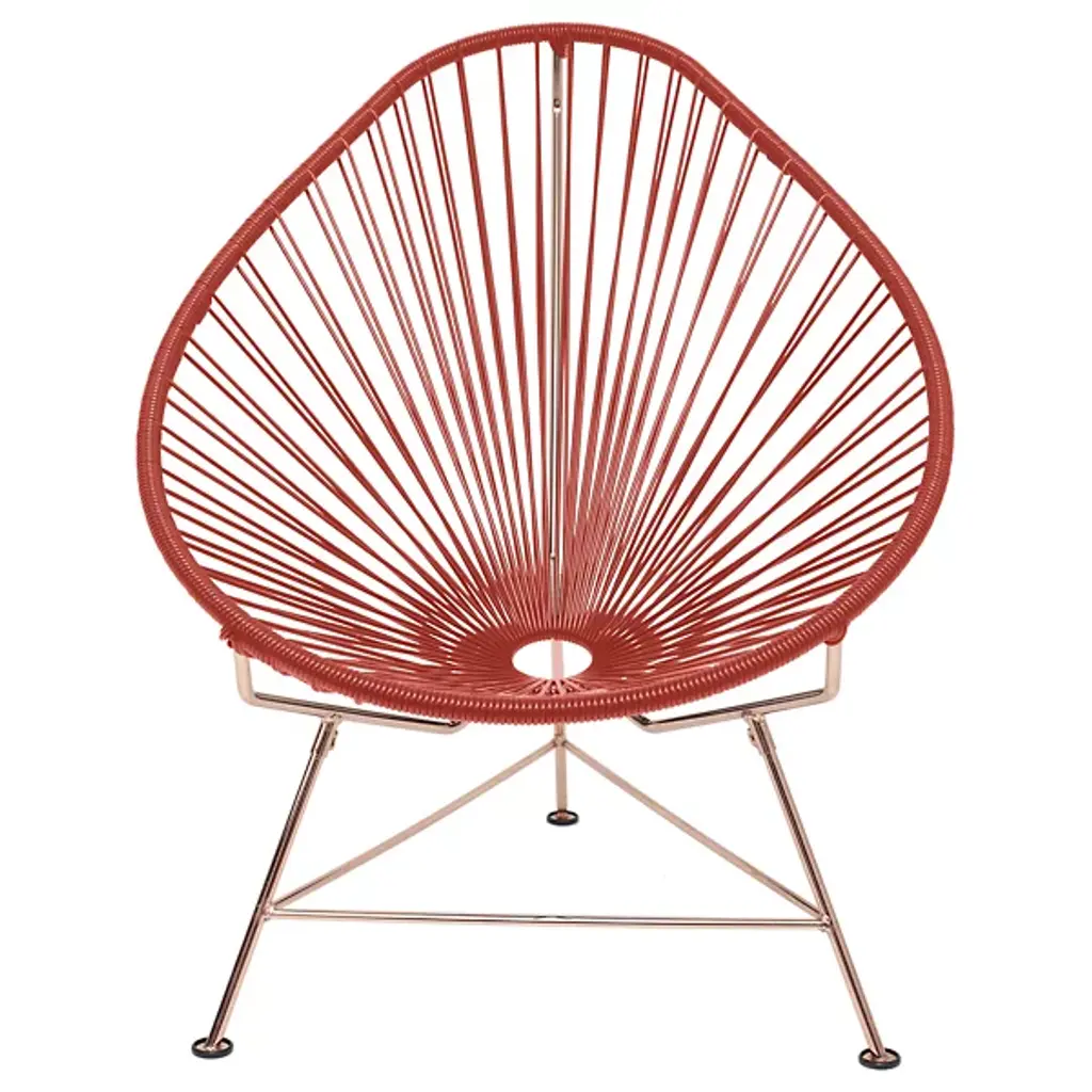 The Innit Designs Acapulco Outdoor Chair is cool in more ways than one. Based on the original 1950s design, it has an open and airy yet ergonomic and supportive open weave vinyl seat inspired by traditional Mayan hammock weaving techniques. The pear-shaped seat and architectural steel frame give the chair a retro-modern aesthetic suitable both indoors and out. Note: Chrome and copper frame finishes are suitable for indoor use only.