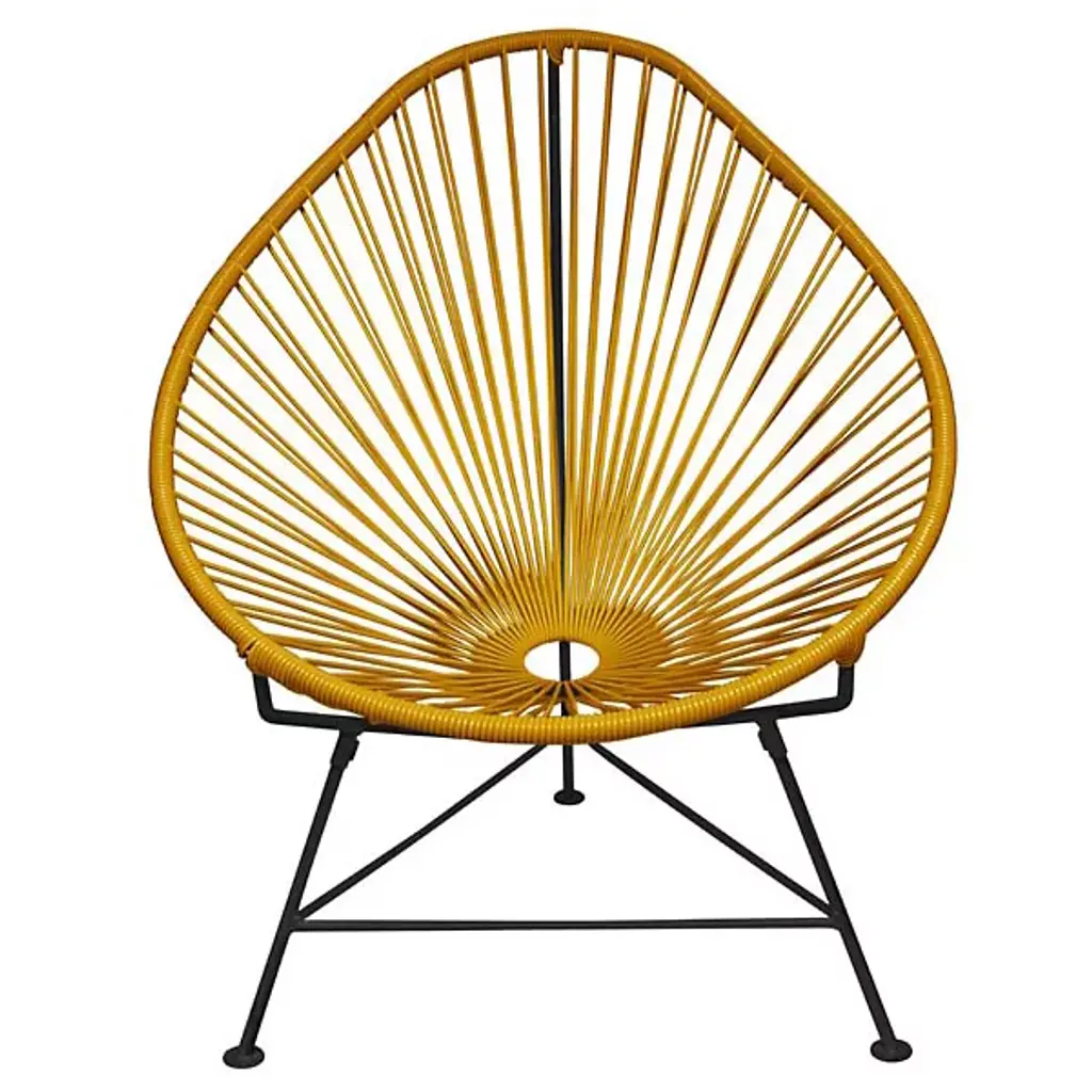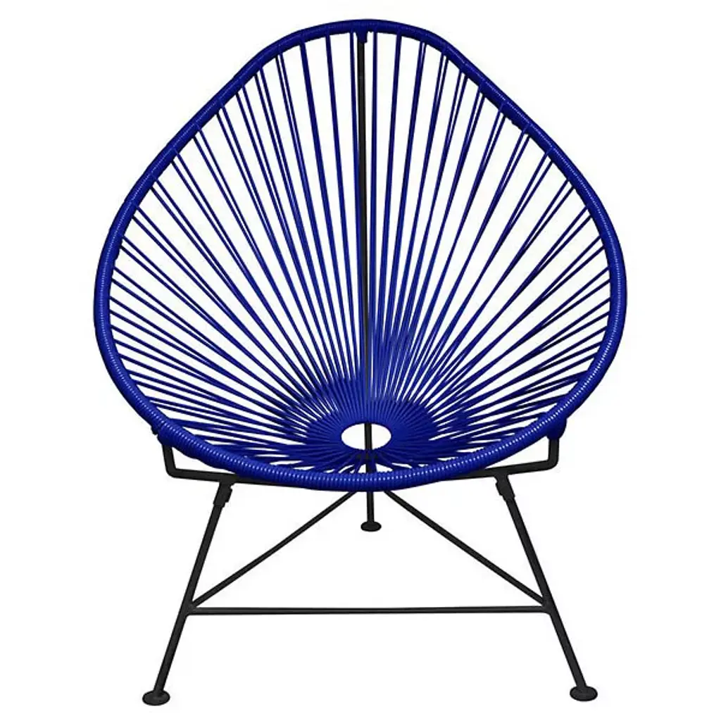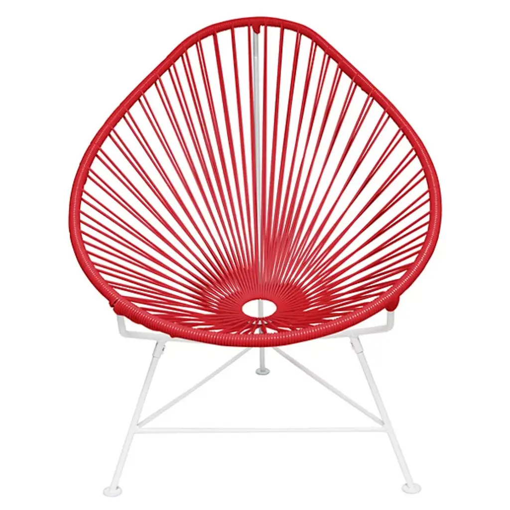 The Innit Designs Acapulco Outdoor Chair is cool in more ways than one. Based on the original 1950s design, it has an open and airy yet ergonomic and supportive open weave vinyl seat inspired by traditional Mayan hammock weaving techniques. The pear-shaped seat and architectural steel frame give the chair a retro-modern aesthetic suitable both indoors and out. Note: Chrome and copper frame finishes are suitable for indoor use only.