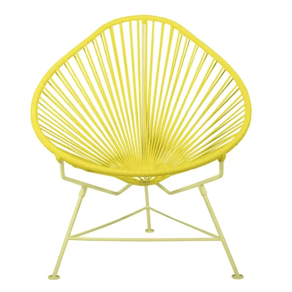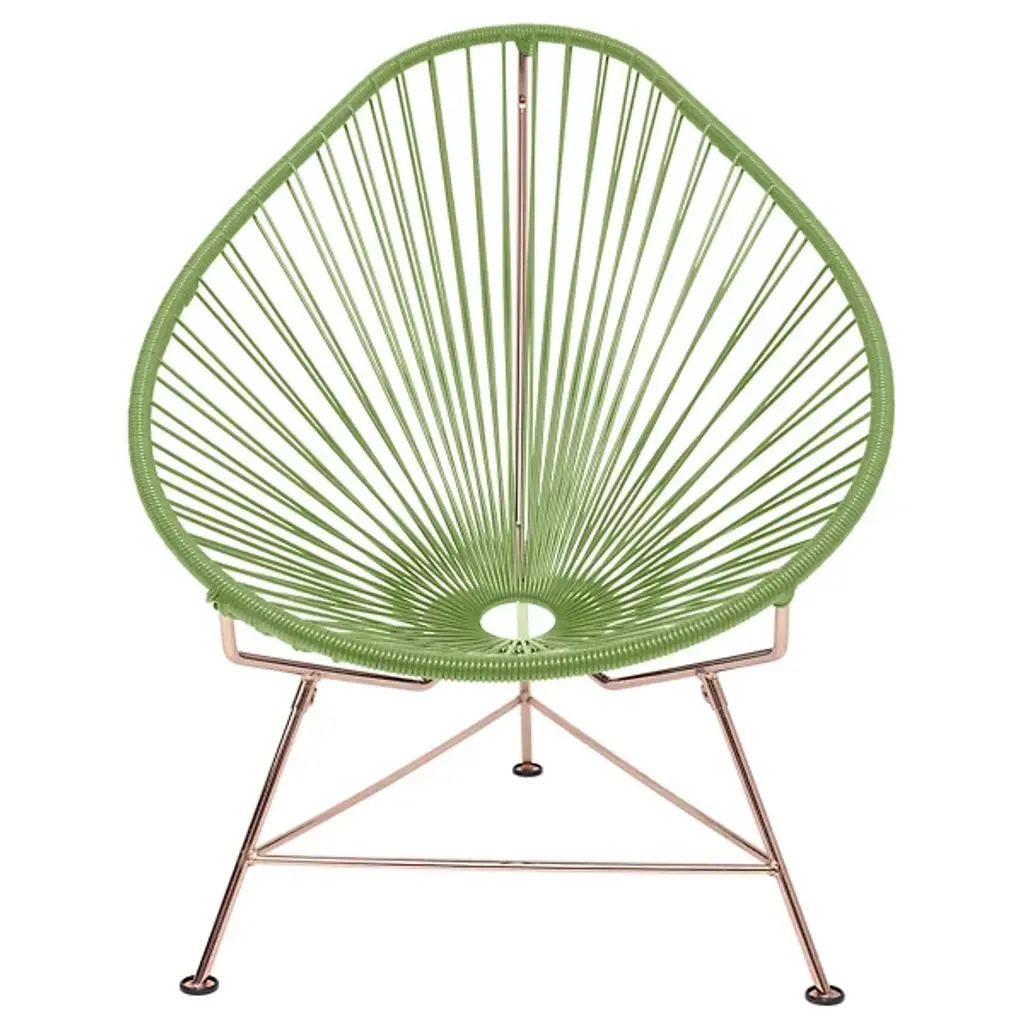 The Innit Designs Acapulco Outdoor Chair is cool in more ways than one. Based on the original 1950s design, it has an open and airy yet ergonomic and supportive open weave vinyl seat inspired by traditional Mayan hammock weaving techniques. The pear-shaped seat and architectural steel frame give the chair a retro-modern aesthetic suitable both indoors and out. Note: Chrome and copper frame finishes are suitable for indoor use only.