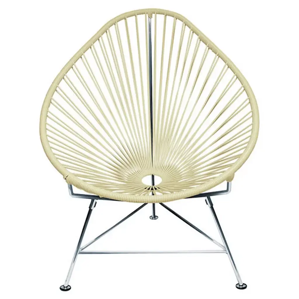 The Innit Designs Acapulco Outdoor Chair is cool in more ways than one. Based on the original 1950s design, it has an open and airy yet ergonomic and supportive open weave vinyl seat inspired by traditional Mayan hammock weaving techniques. The pear-shaped seat and architectural steel frame give the chair a retro-modern aesthetic suitable both indoors and out. Note: Chrome and copper frame finishes are suitable for indoor use only.