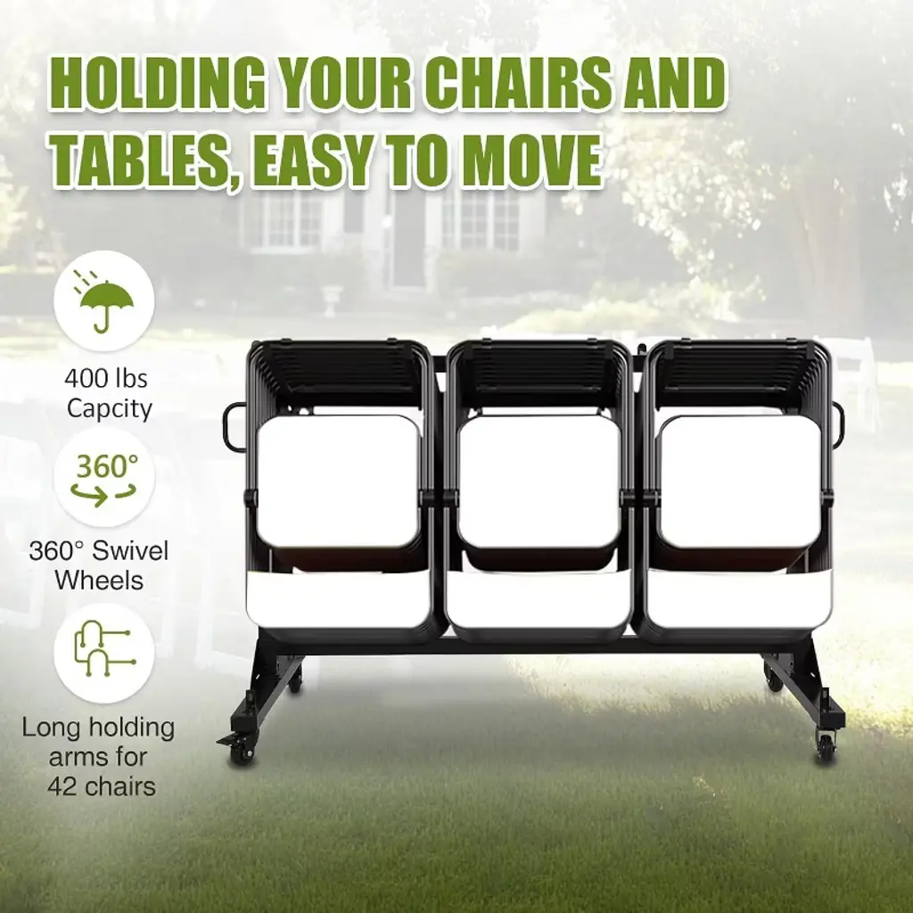 Acekool Folding Chair Rack Cart With Adjustable Height, Pvc Locking Wheels, Cover Included, Heavy Duty Metal Frame, Holds Up To 42 Chairs