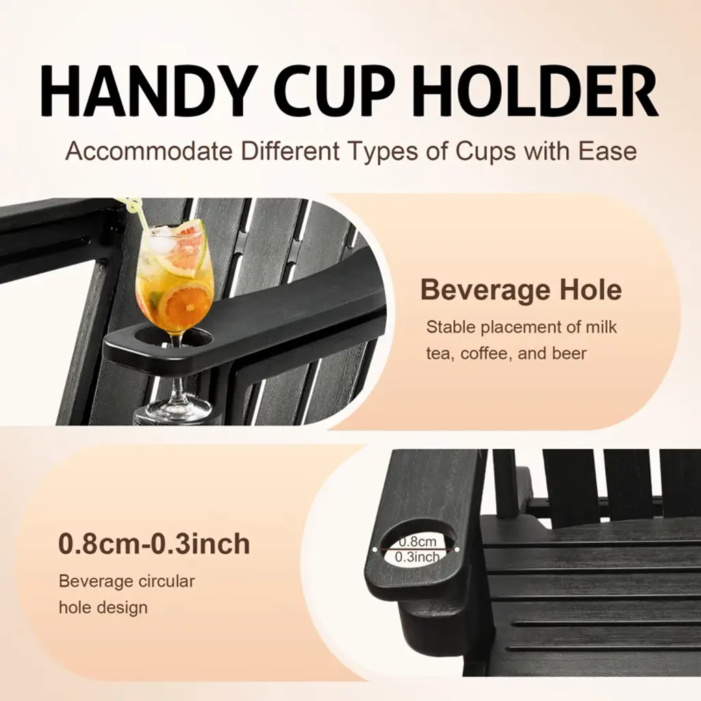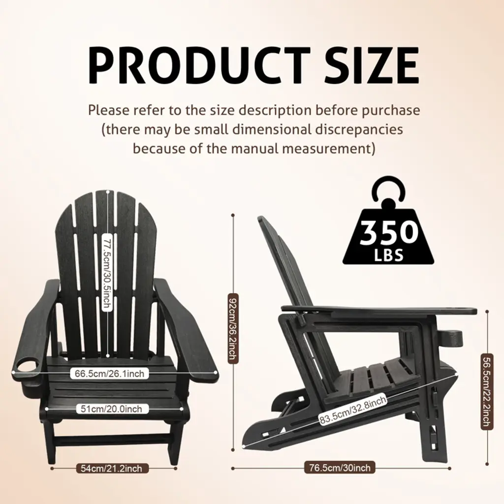 Revolutionize Your Outdoor Relaxation with Effortless Assembly: Our adirondack chair stands out with its innovative design that requires no tools for installation. Simply unfold and secure – it's that easy! You can enjoy your cozy outdoor retreat in just five minutes, transforming your backyard into a serene haven effortlessly.Premium HDPE Plastic Construction for Durability and Style: Crafted from high-density polyethylene (HDPE) plastic, our adirondack chair offers a sturdy and stylish seating solution. Resistant to weathering and fading, it maintains its elegant look and comfort year-round, ensuring long-lasting enjoyment.