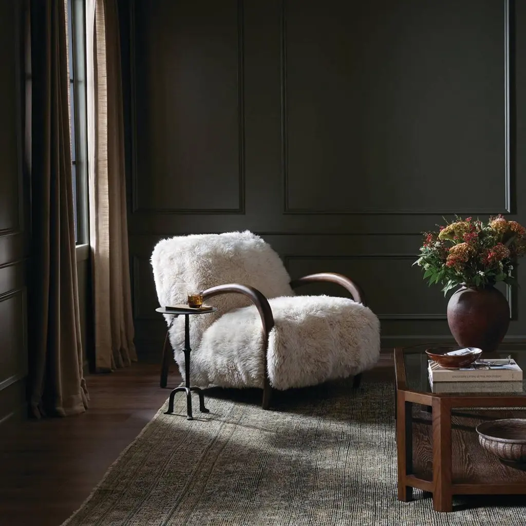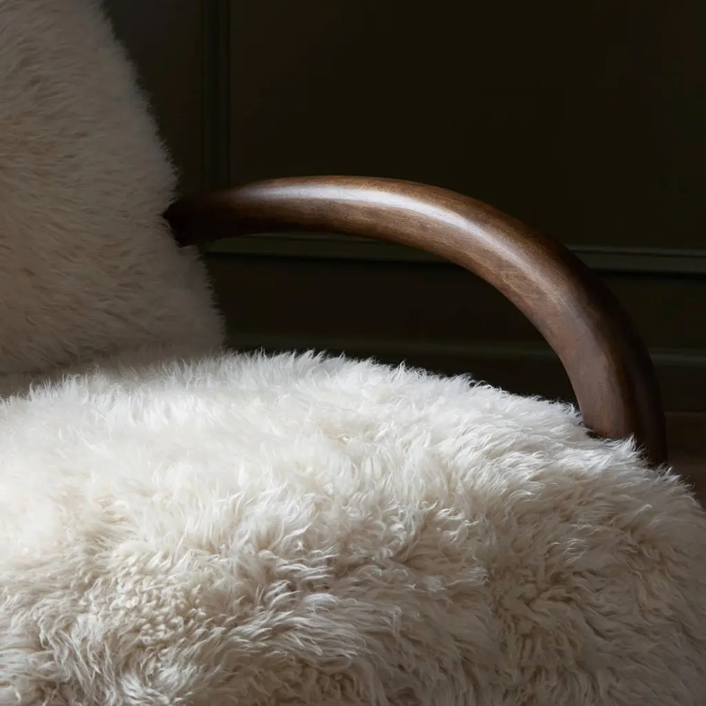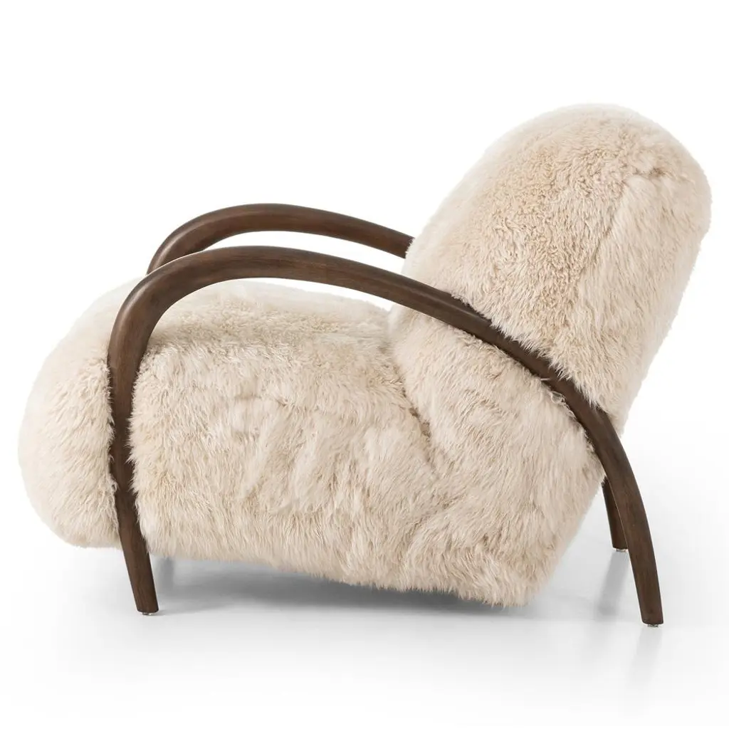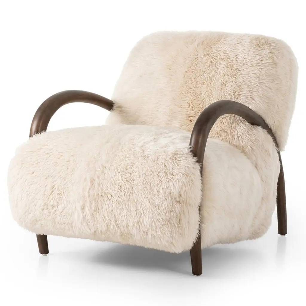 Adriel Rustic Lodge Cream Wool Fur Arm Chair