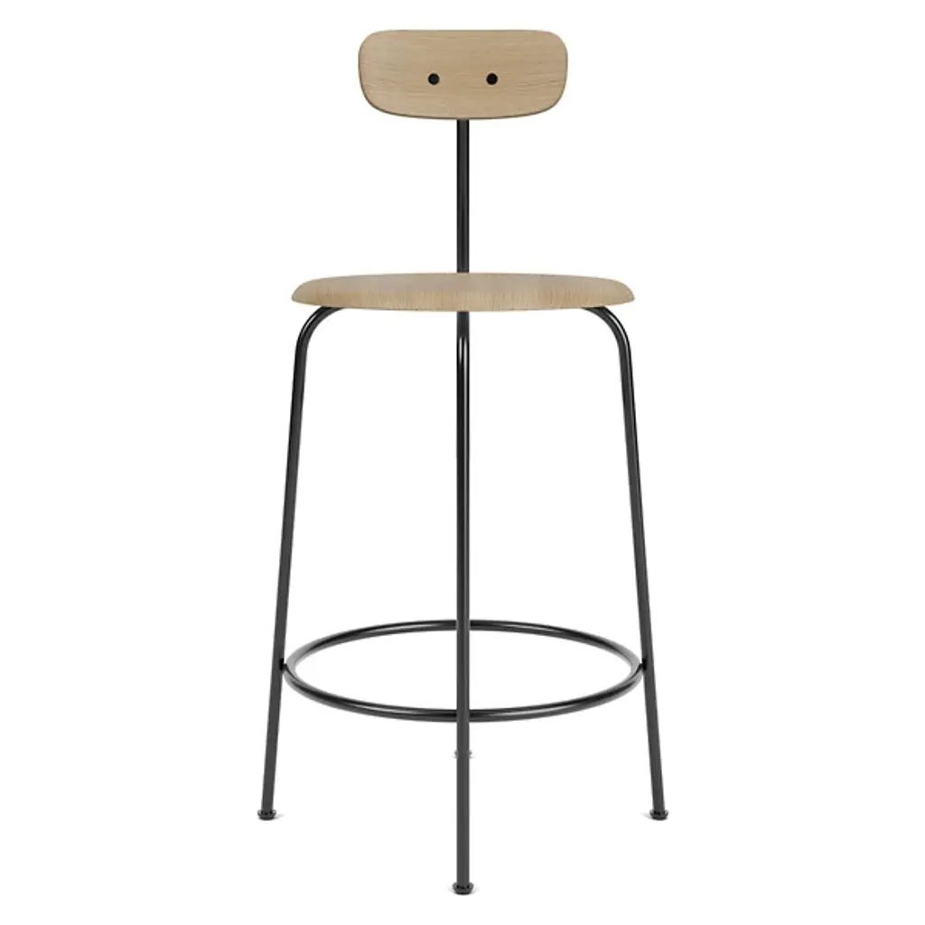 The Afteroom Bar / Counter Chair from Audo Copenhagen is designed by Afteroom . It has a graceful, slender framework and is composed of powder-coated steel. The introduction of plywood and wood adds durability and a natural aesthetic. A rounded seat and seatback bring refinement to this Scandinavian and contemporarily styled piece. This BIFMA Certified compliant seating solution keeps you elevated and well-supported with its four-legged formation, exuding functionality, and a minimalistic touch.